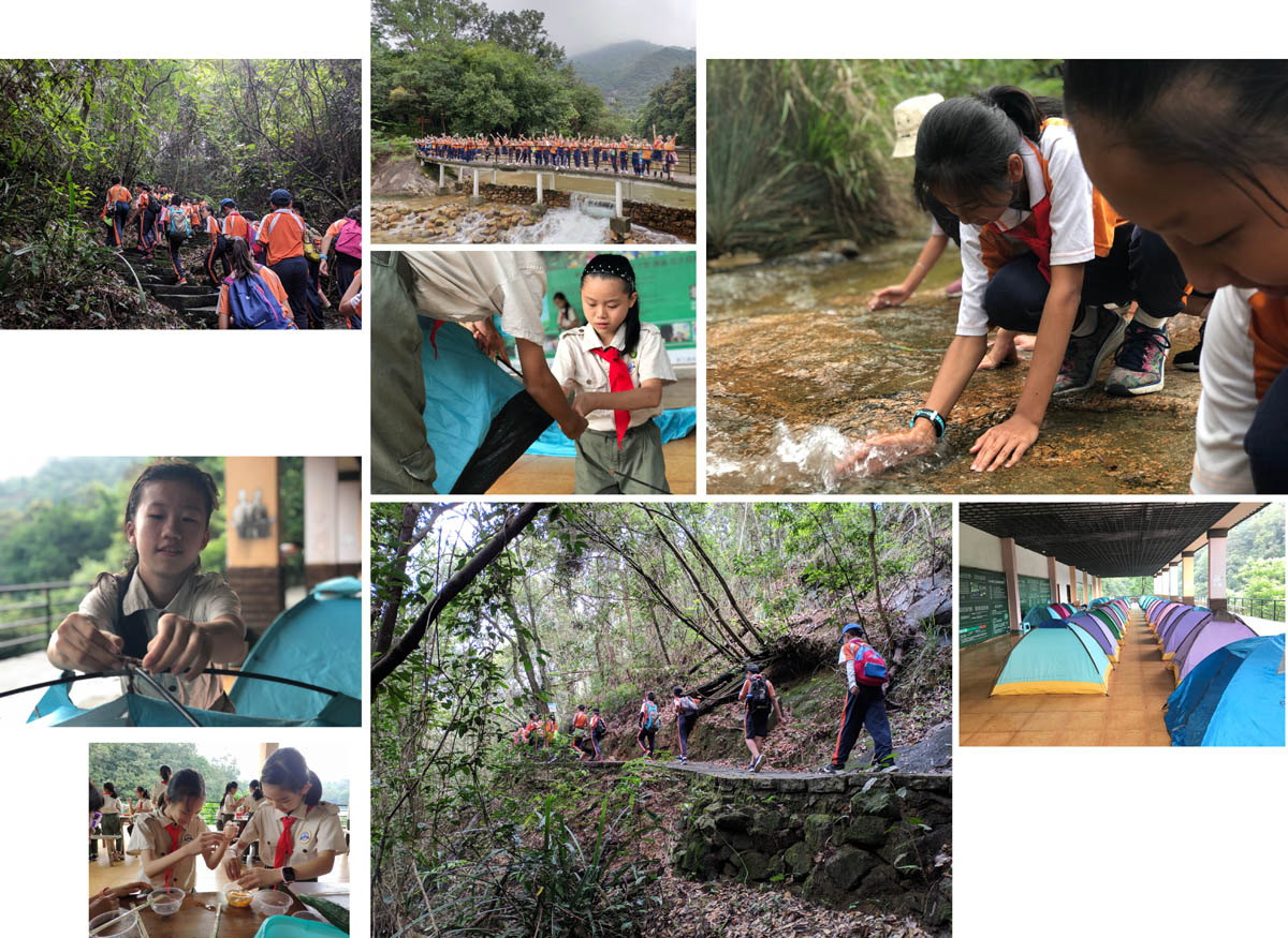 “户外学校”将进行多期开发,目前第一期开发有八个户外课室、教务处、升旗台、观星台、露营区、植物研修径、溯溪、徒步径、越野定向等等。开展了九大系列课程: