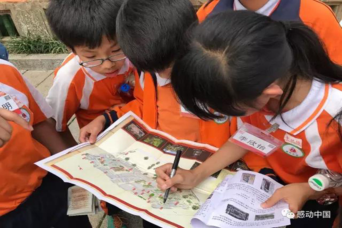 我们运用看、听、问、记、研、习的方式,让学生带着地图、任务,以小组为单位,主动探寻人文历史,乡土乡情,把被动学习变为主动,富含趣味和欢笑!
