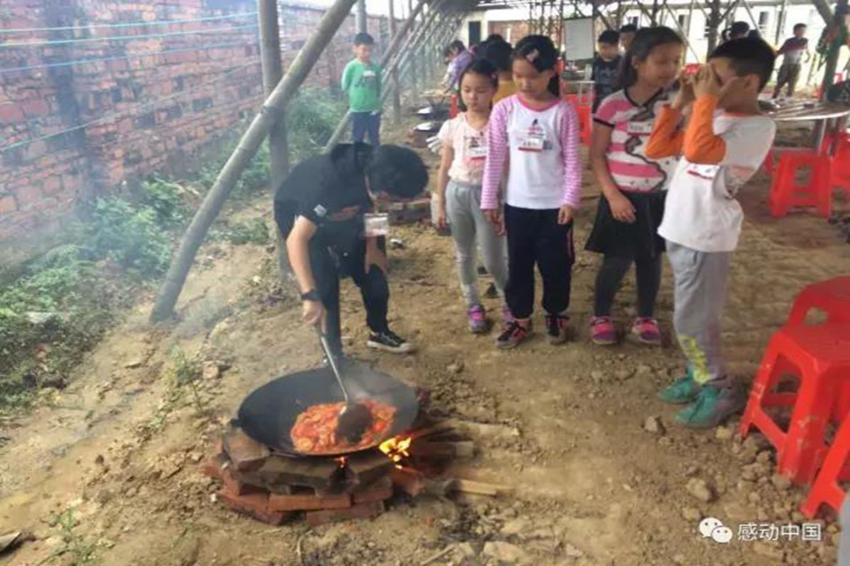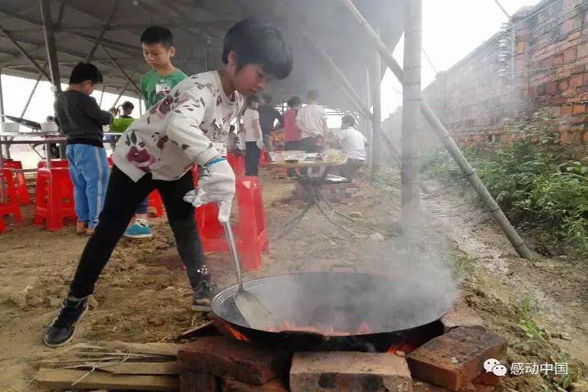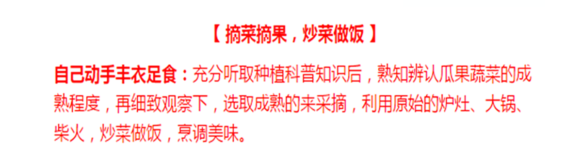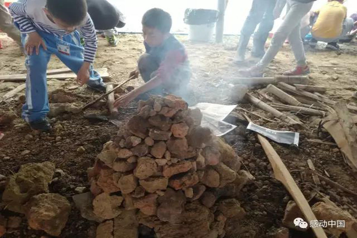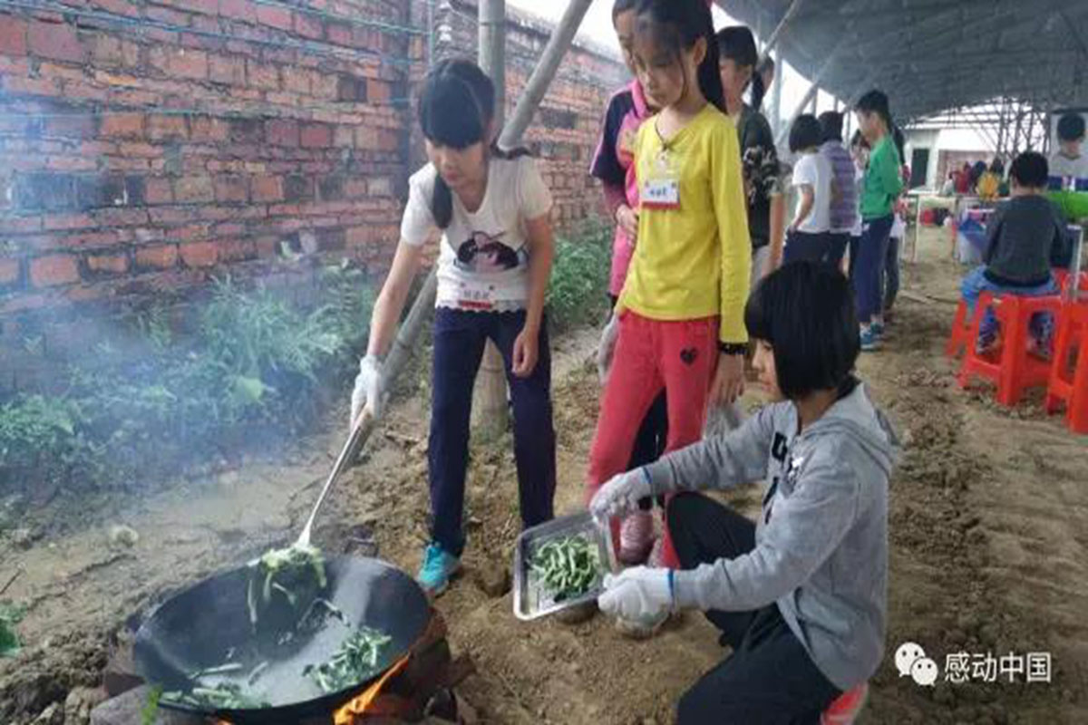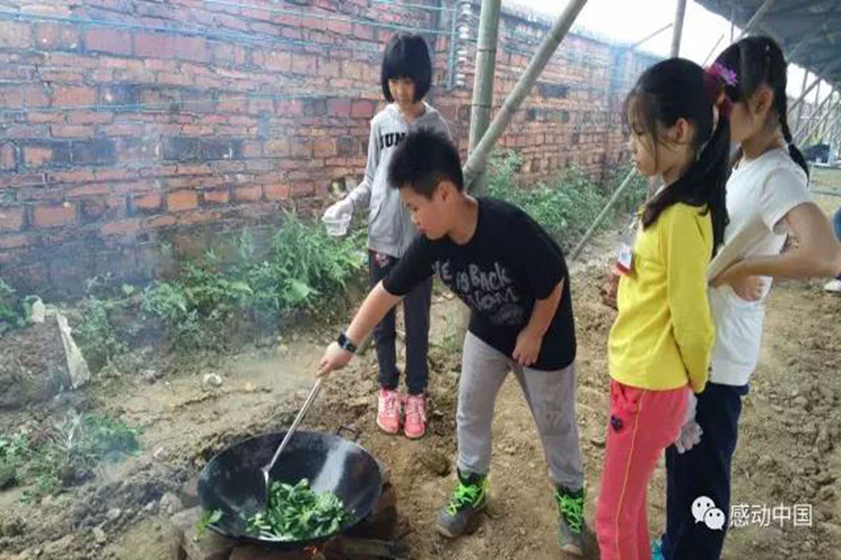 孩子们识瓜认豆、摘菜摘果、浑水摸鱼、垒窑烤鸡、炒菜煮饭。