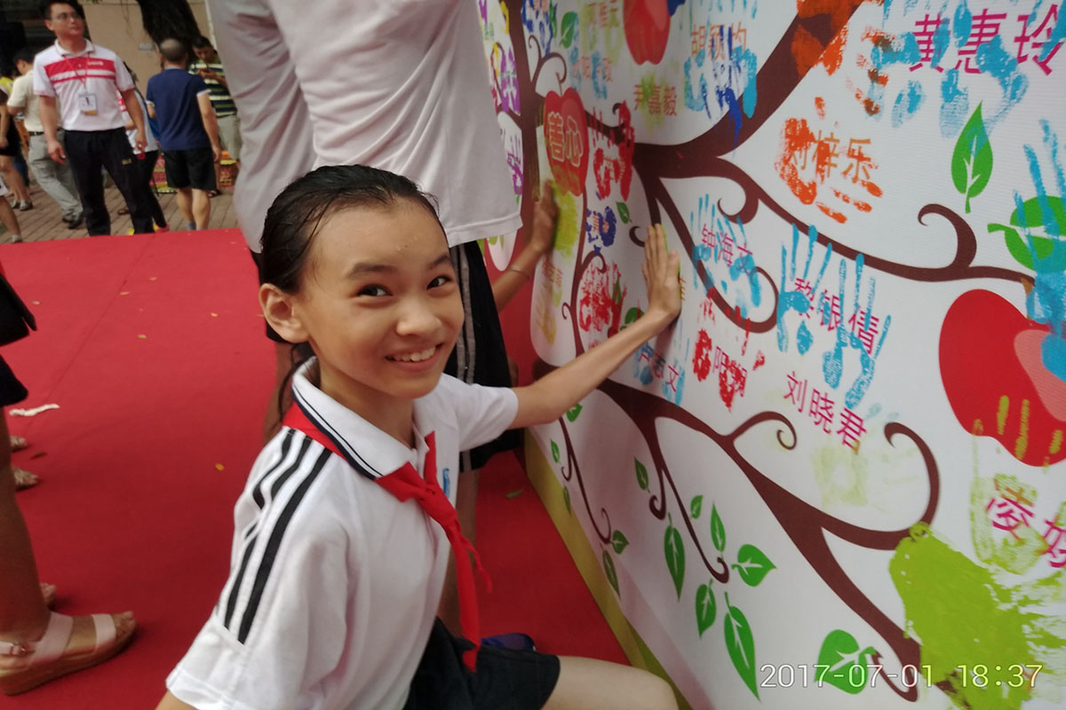最后环节中,所有毕业生在舞台上的至善树按下属于自己的彩色手印,这不仅意味着在至善树留下自己独特的印记,还在莞城中心小学分校发展史上留下自己成长的烙印。6年前的他们是莞城中心小学分校的第一批种子,今天的他们是莞城中心小学分校的第一批果实,将来的他们也将成为社会的栋梁。