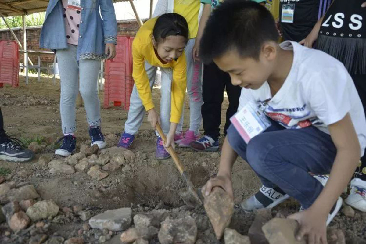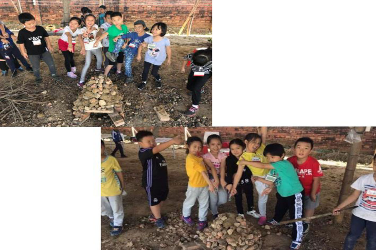 这可是非常考验耐心、技巧和团队配合的事项。孩子们有的拿着铁锹有模有样地挖窑洞,有的到处找搭窑的石块、有的跟教练一起搭窑,还有的目不转睛地盯着逐步搭起来的窑洞,生怕一不小心塌下去了。