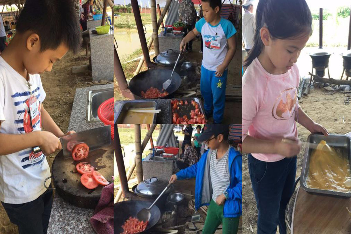 还有番茄炒蛋呢,每个同学都想动手切番茄打鸡蛋,教练让孩子们排好队,分好组,这一队轮流切番茄,这一队轮流打鸡蛋,各项工作进行得井然有序。