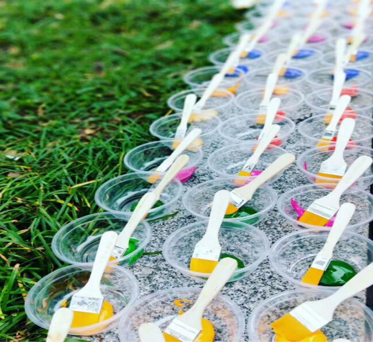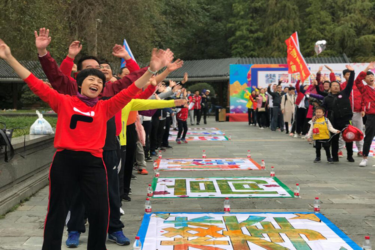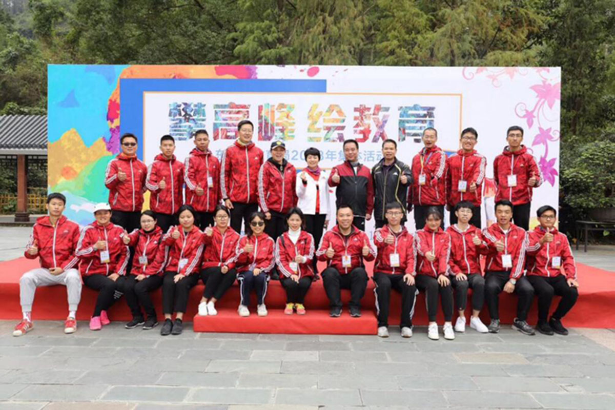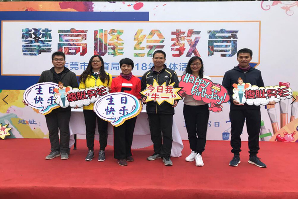 上午10点多,到达古庙广场的全体人员分组进行了“神笔马良”活动。大家在梁局的带领下纷纷拿上五彩画笔,齐齐动手,点墨的点墨,上色的上色,指导的指导。不大一会功夫,不同的色彩共同描绘出了大型绚丽的喷图彩绘:“攀高峰、绘教育”,“让每一个学生受到最适合的教育”,抒发了全局干部职工为东莞教育发展而奋斗的豪迈情怀。
