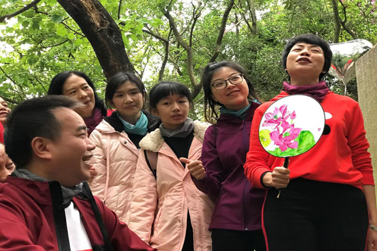 漫步在塔影婆娑、波光潋滟、林木阴翳的湖边小径,身处石刻小品、书法碑林、人物雕塑、历史文化墙廊之中,呼吸的是沁人心扉的清新空气,感受的是博大的廉洁奉公、知耻明义等思想内涵。融情于景,触景生情。这种生态美景与“廉”文化核心价值观引发的情感,驱动着每个小组自发在名诗美句雕塑前抒怀明志,合影珍藏;同时还纷纷录制集体吟诗诵文的小视频上传到“莞教e家”,以分享“腹有诗书气自华”的精神风貌。