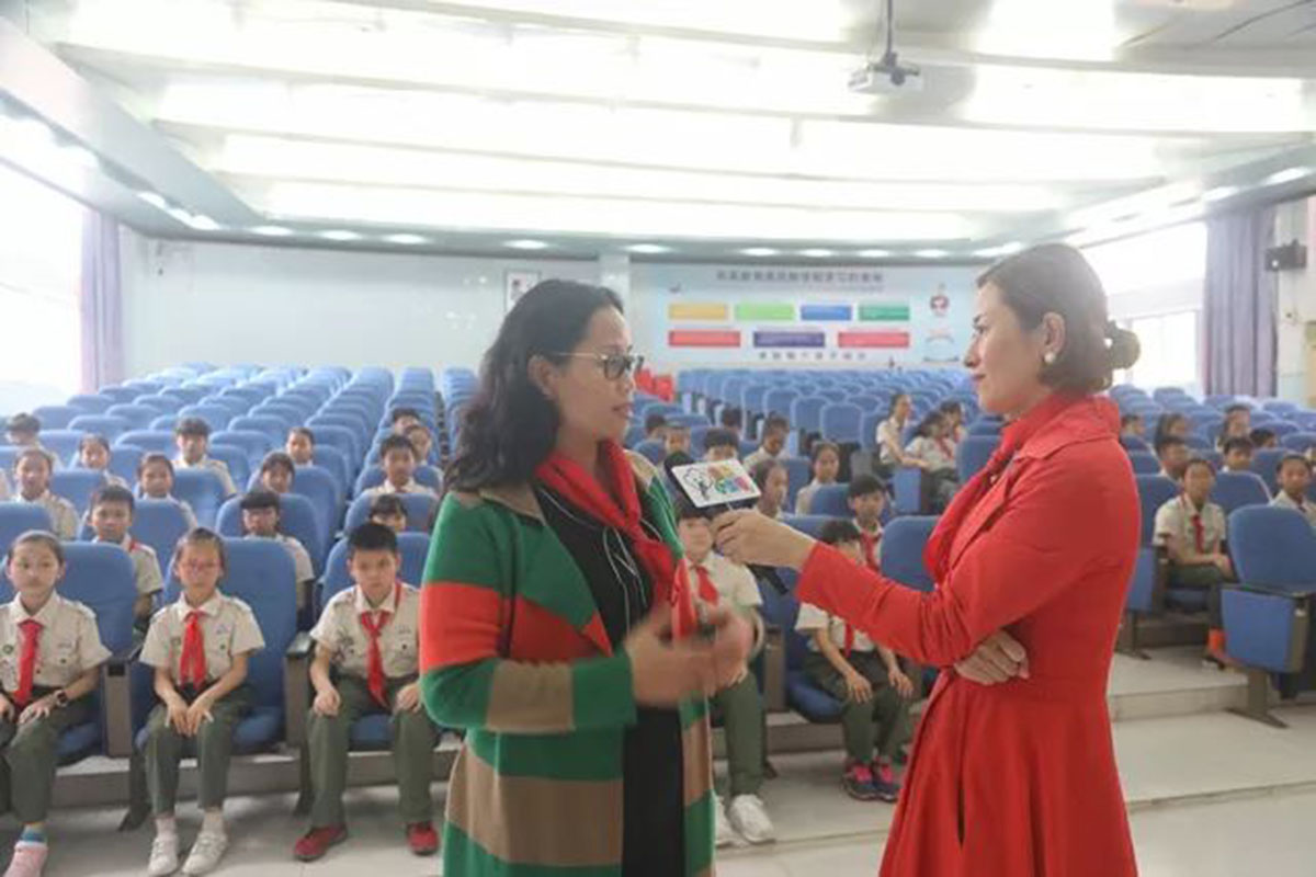 当天下午,广东现代教育频道早早来到镇田小学,对彭仿兰副局长、王桂群校长、感动中国教育集团董事长刘泽红女士以及学校家代表进行了细致的采访。