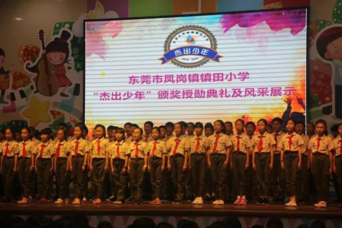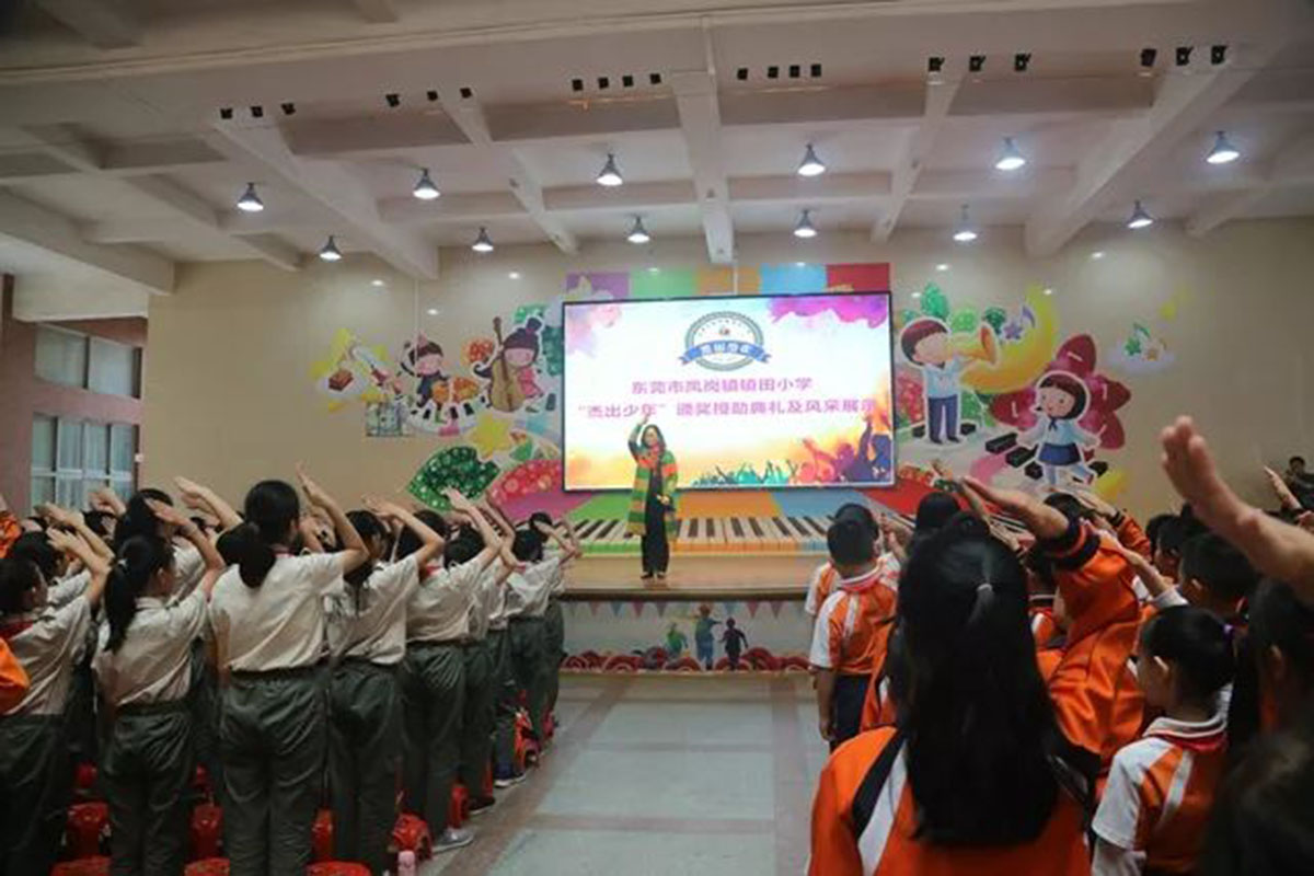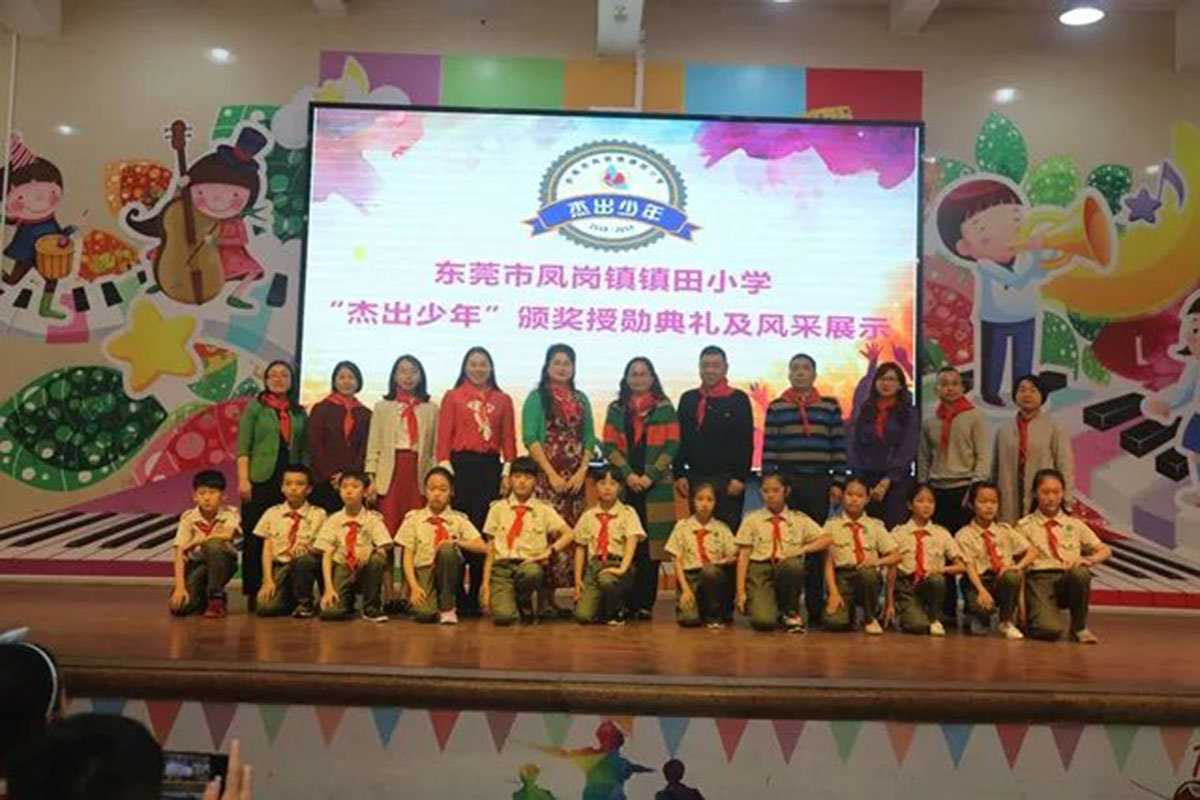 为了发扬学校的优良传统,营造良好的育人氛围,激励在学习上、品行上表现优秀的少先队员,2月28日下午,感动中国携手镇田小学大队部组织的杰出少年授勋仪式及风采展示在诚实厅举行。广东现代教育频道特意前来观看并进行拍摄。本次授勋仪式出席的嘉宾有宣教文体局副局长彭仿兰女士、镇田小学全体行政人员、感动中国的教练团队以及杰出少年中队的家长们。
