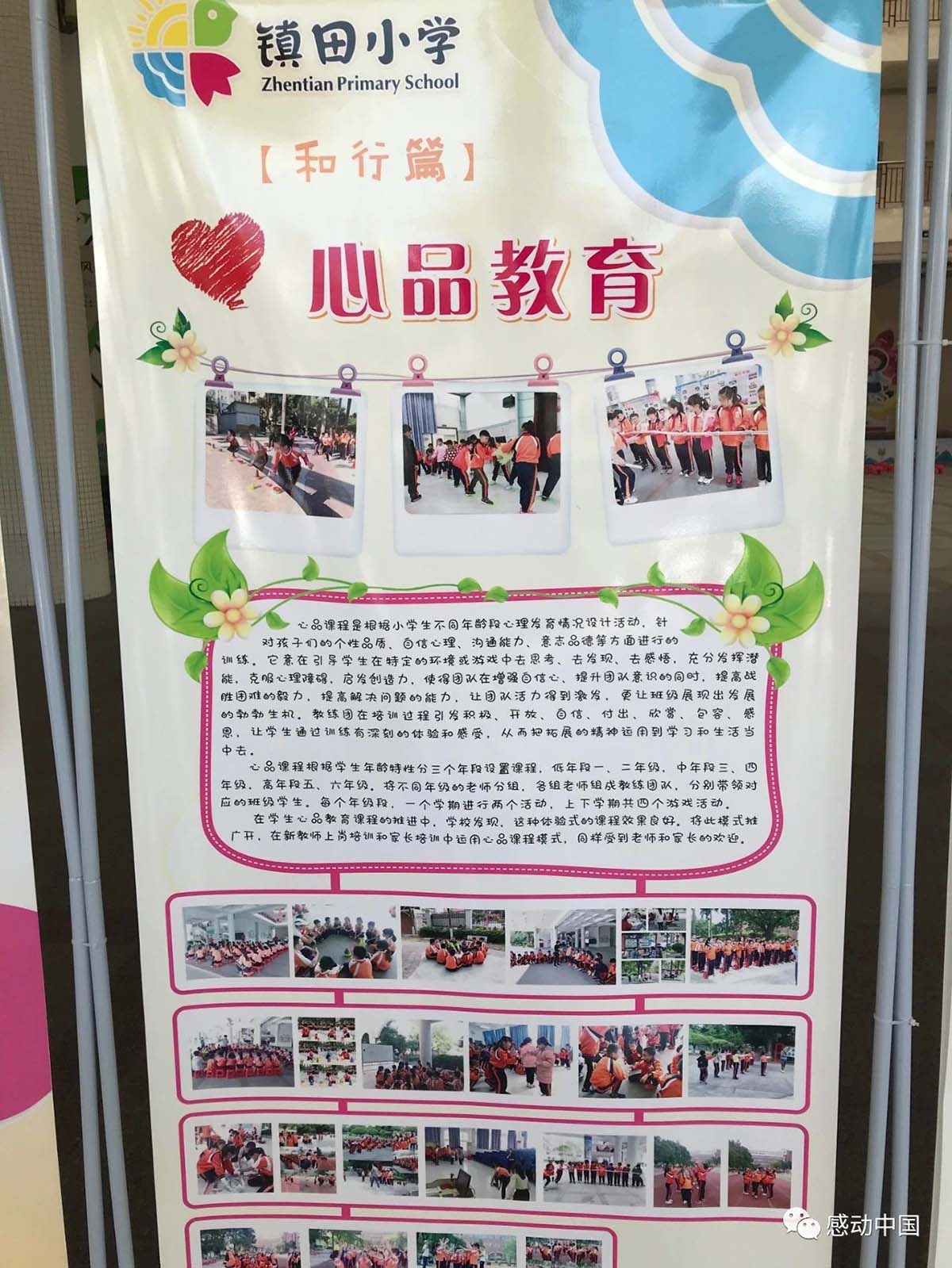 (注:心品课详为塑造青少年健康心理品质课程,自2013年开始,镇田小学和感动中国共同打造,通过体验式游戏,把不同年龄段的孩子内心出现的一些心理变化,通过活动呈现,让教练们提前干预,从而打造心理素质过硬的学生队伍,打造教练型老师教练队伍,至今一直在不断努力,砥砺前行。)