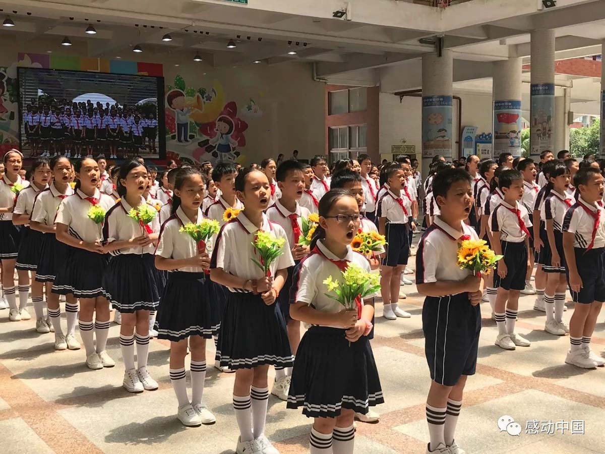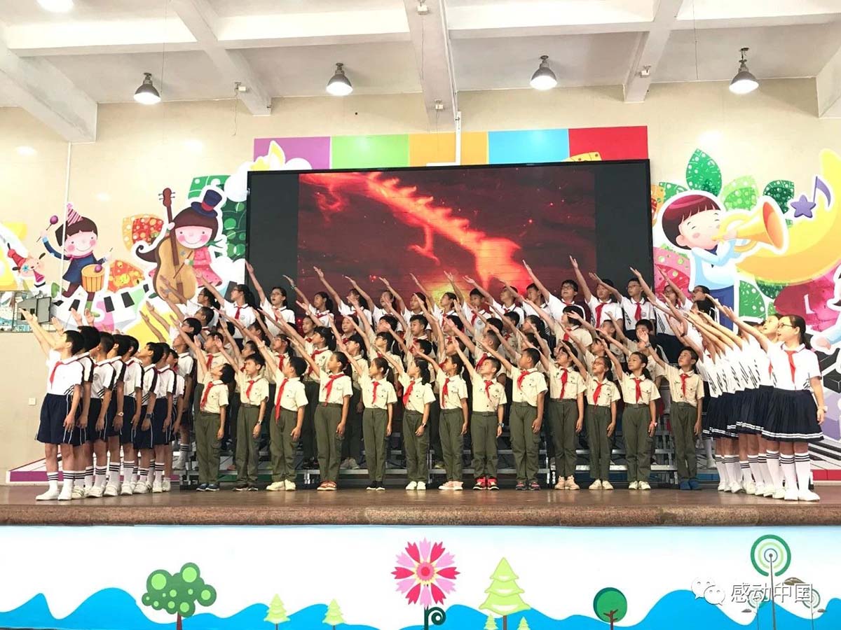四五年级两个“杰出少年”班的90位同学,共同在“田美诗会”上展示经过广东电视台著名播音主持口才训练课后的《少年中国说》,声音激昂,振奋人心!