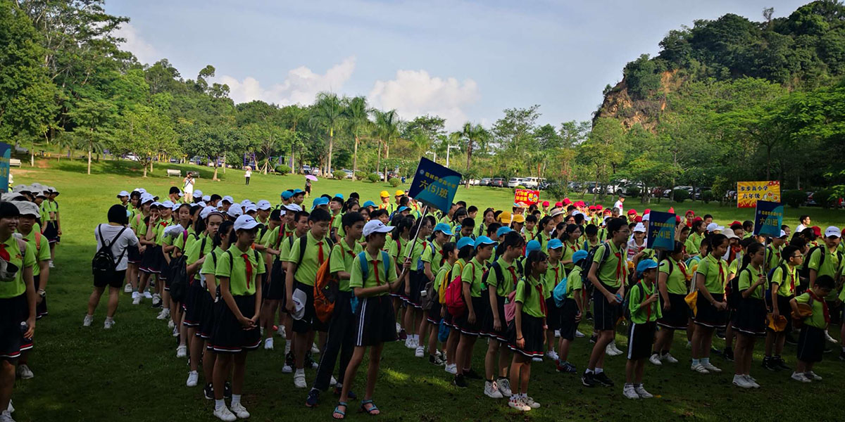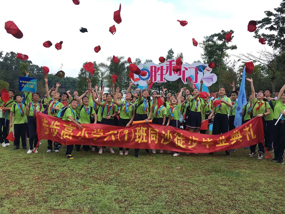 “6月29日上午,莞城步步高小学在同沙生态园举行‘放飞梦想 扬帆起航’十公里徒步毕业典礼。”