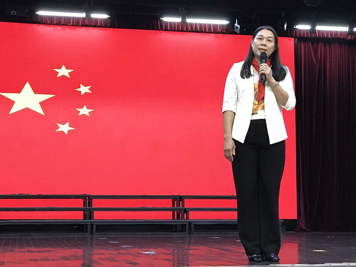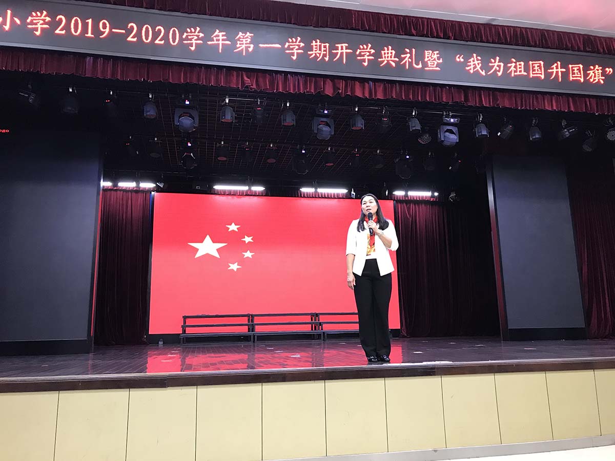 开学第一天,升国旗奏唱国歌,感动中国红豆总教练上台做主题为“热爱”的精彩演讲,红豆教练勉励大家作为一名少先队队员,把热爱祖国之情体现在热爱家乡、热爱社区、热爱学校、热爱班级、热爱同学、热爱老师、热爱家庭的点点滴滴上。