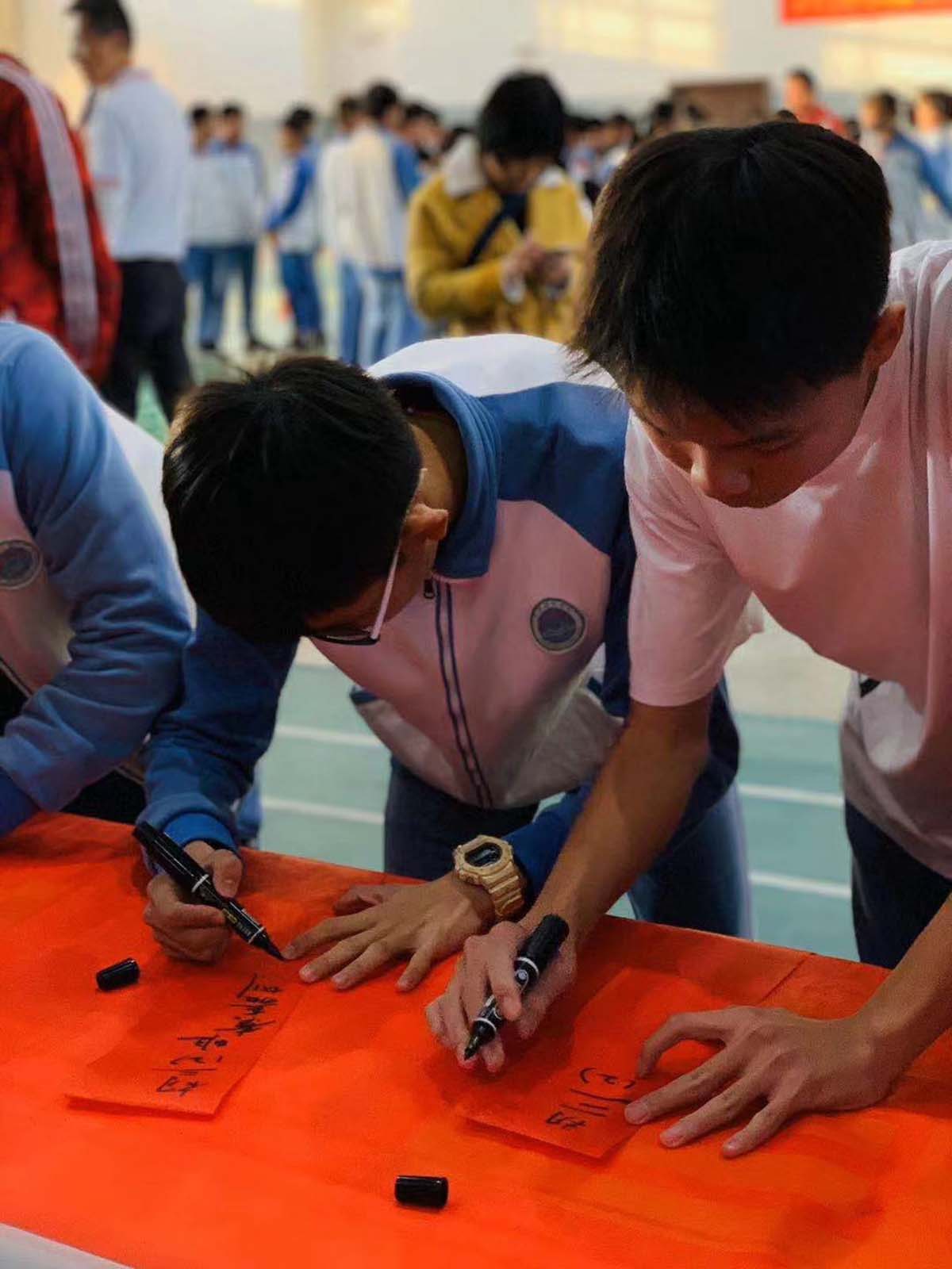 学生们在突破目标后,在红绸布上写下目标和心仪的理想学校,签下名字,以鞭策自己未来的努力方向!