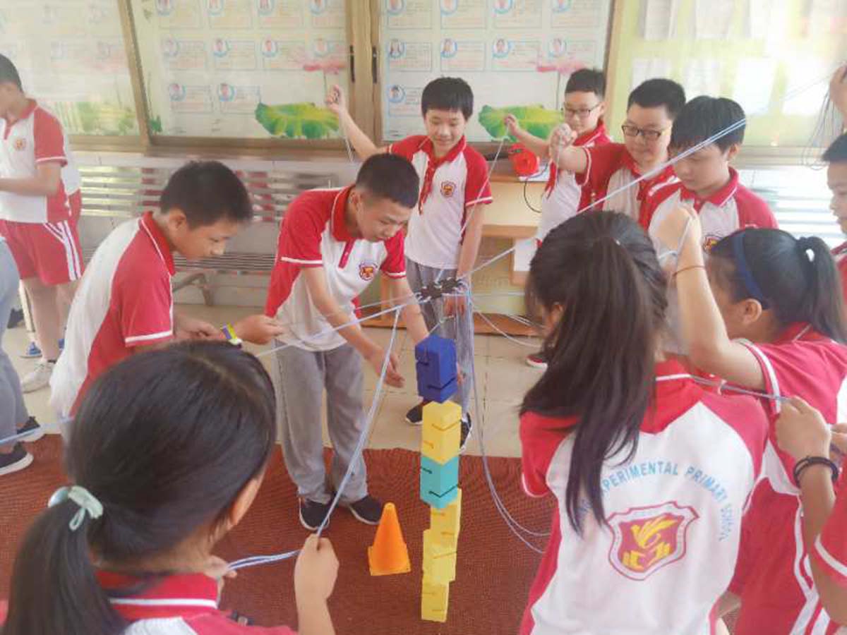 为了让学生拥有阳光心态,健康快乐成长,感动中国受邀精心组织本次课程。在轻松、欢快的热身游戏后,同学们在教练的指引下开始了一项特殊的任务——“合力建塔”。