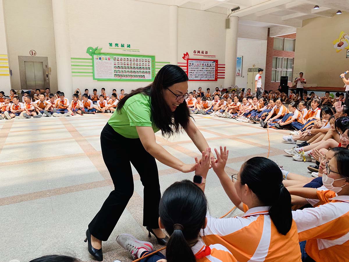 随后,开始了属于六个毕业班共同努力去完成的项目——动力圈,两个同心圆的所有同学们带着突破每一天的美好愿望,挑战摇绳365圈!