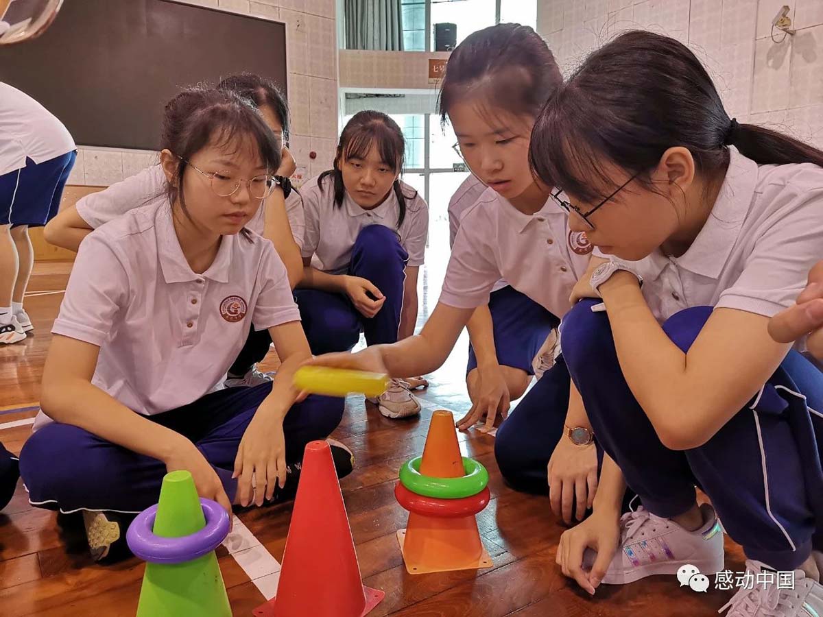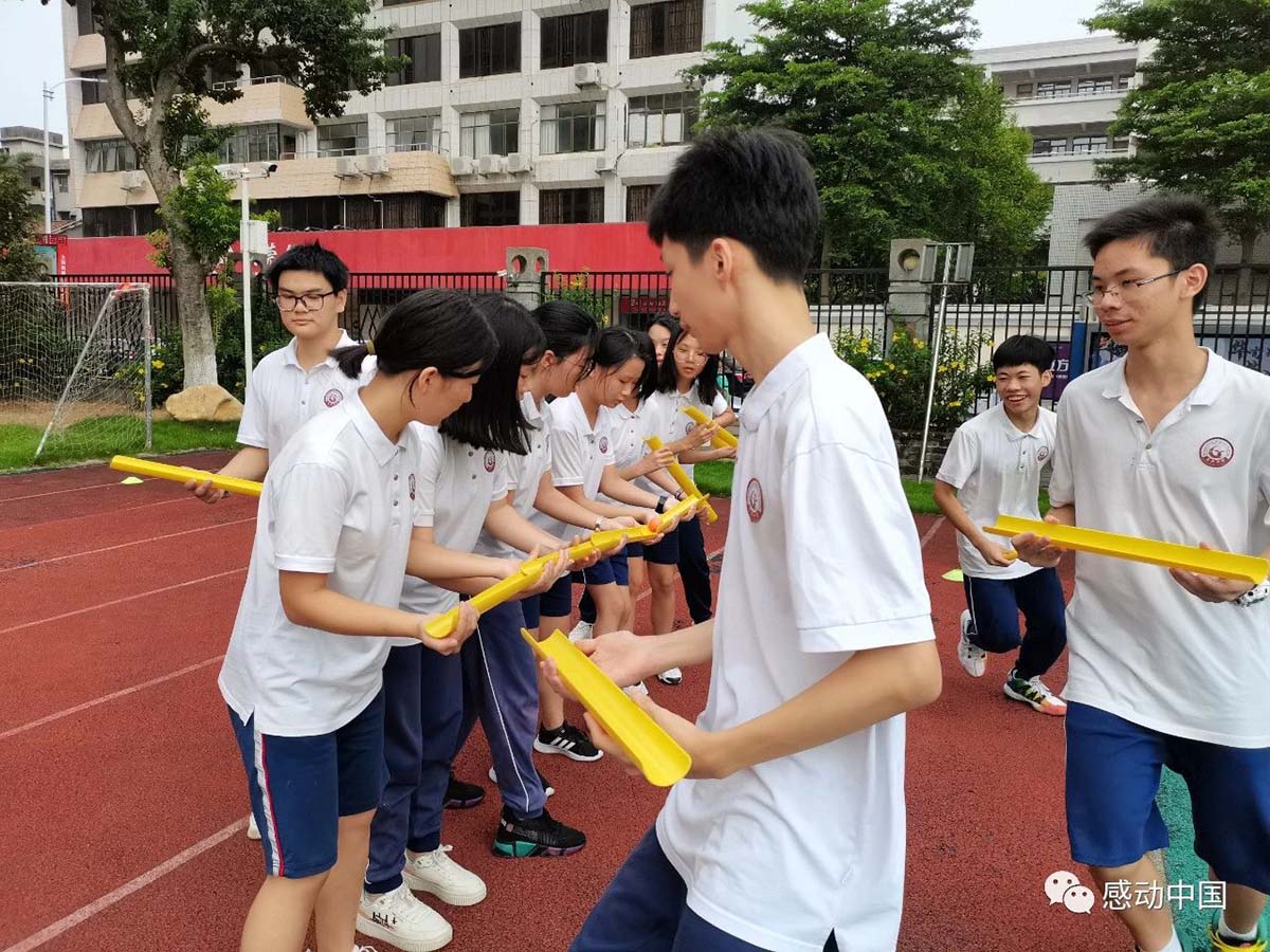 “请问你们有带打火机吗,那你们是怎么点燃我心中的那团火?”这是一位学员对所有在场学员的“情话”,喜悦之情溢于言表。高二学年是高中学习生活中很重要的一年,也是很重要的转折点。9月5日,为了让东莞中学高二的学子们在新班级中可以更好打破壁垒,打开自己,感动中国为东莞中学的高二学子们带来精心设计的训练项目,让学员们身体靠近一点,心也更加近一些。