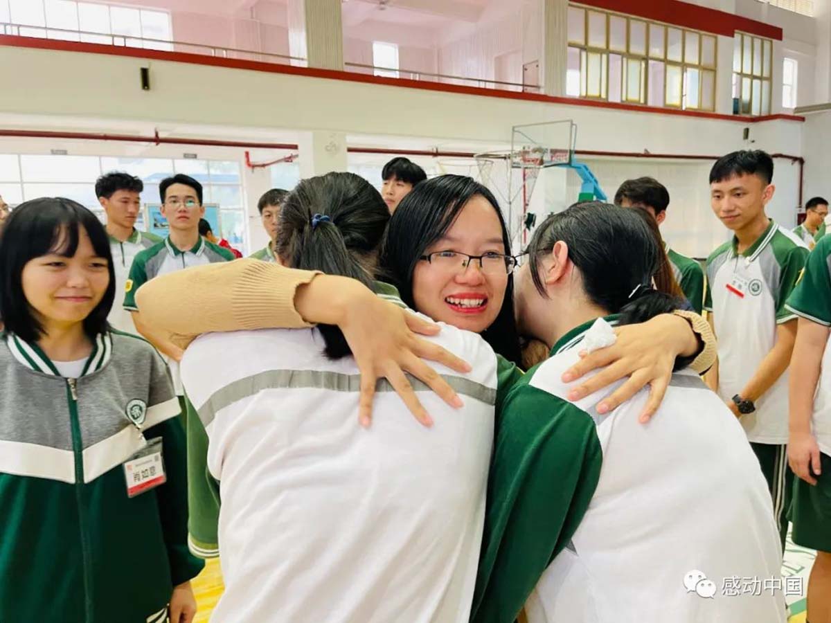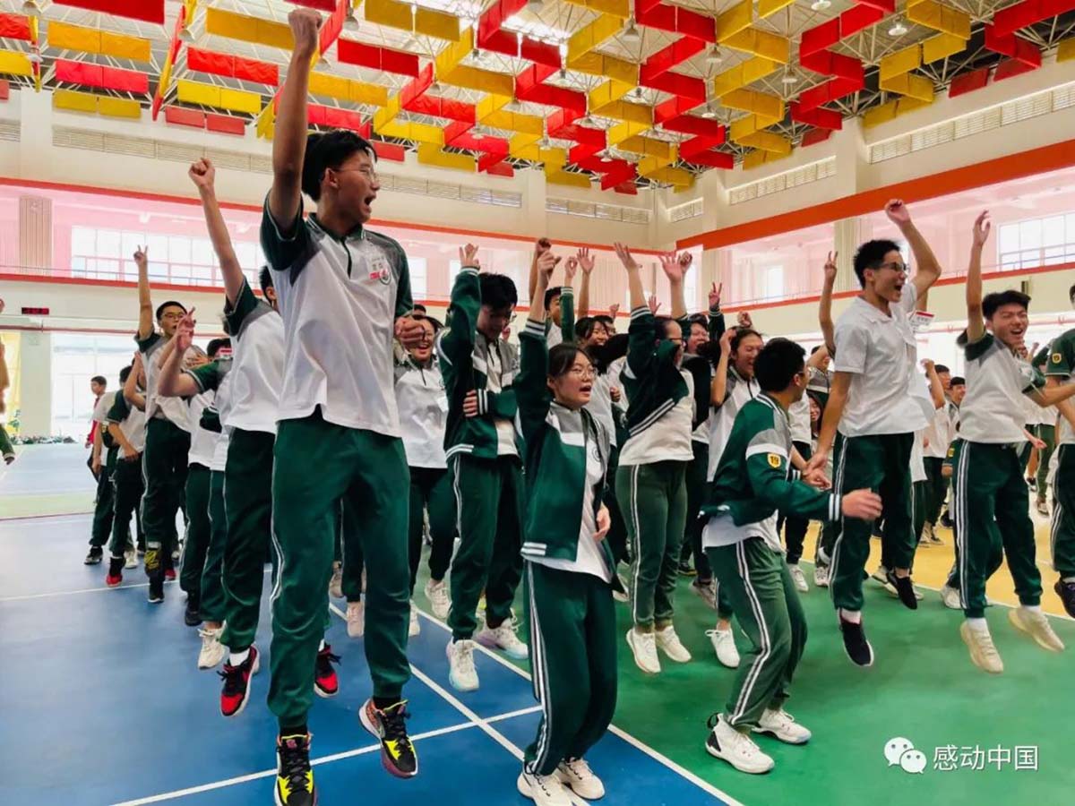 全员闯过“魔王关”那一刻,同学们内心中犹如经历了一场脱胎换骨的蜕变,全场的老师们、教练们一一走到每一位同学面前,与同学们拥抱、嘉许、鼓励和击掌,幸福感满满。同学们也把这份内心的坚定传递给身边的同学,感恩身边同学的支持,感恩老师和学校的鼓励和栽培。