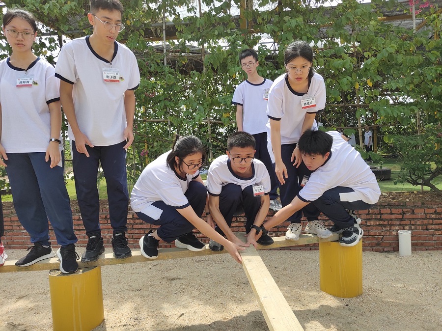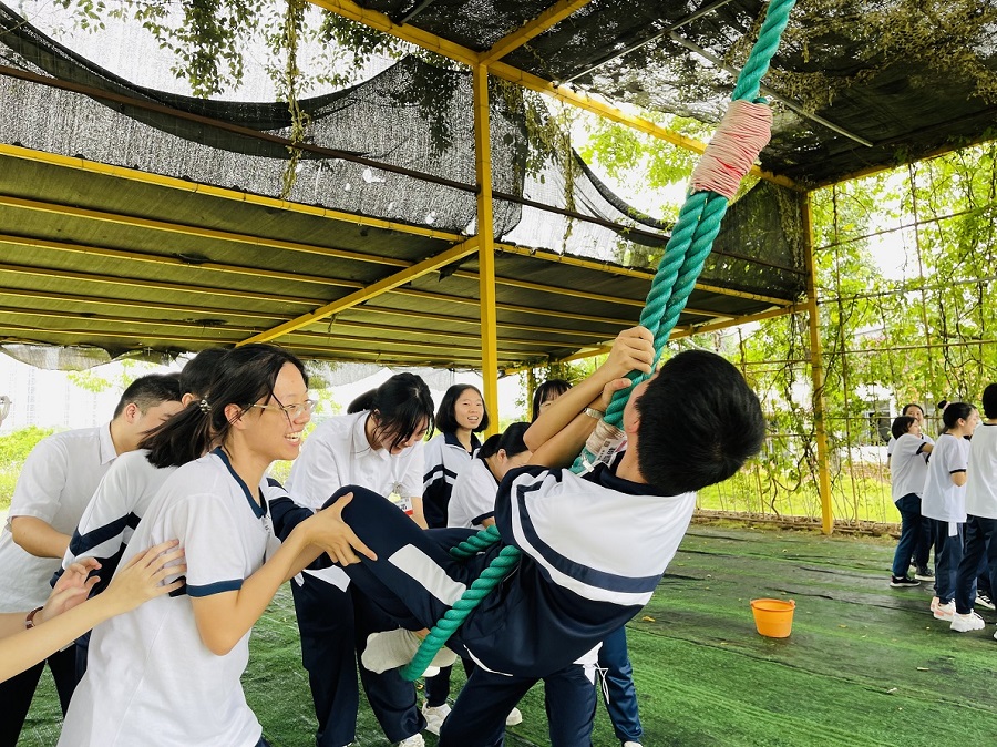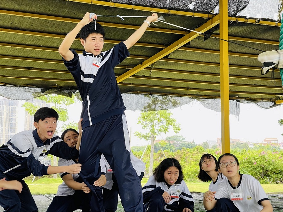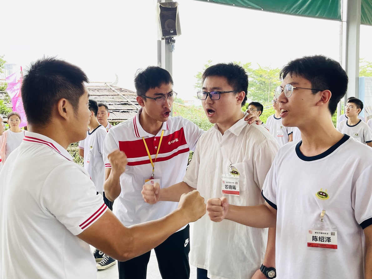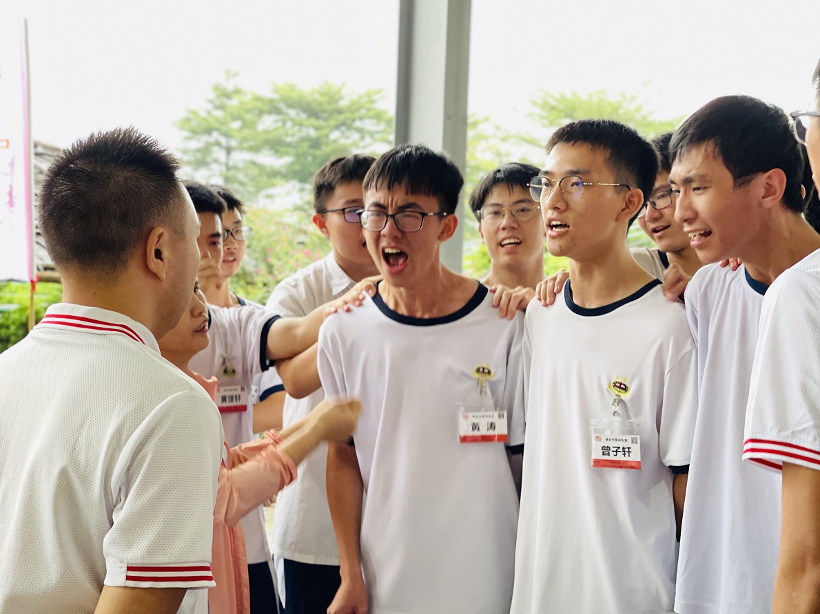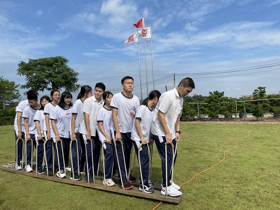 最令人的感动的是前面闯关成功的同学站正在闯关的同学身边,双手搭在他的肩膀上传递能量,并与他们一起呐喊助力,一次又一次竭尽全力的呐喊,双手拍红,喉咙喊破,为了目标坚持到底,决不放弃!