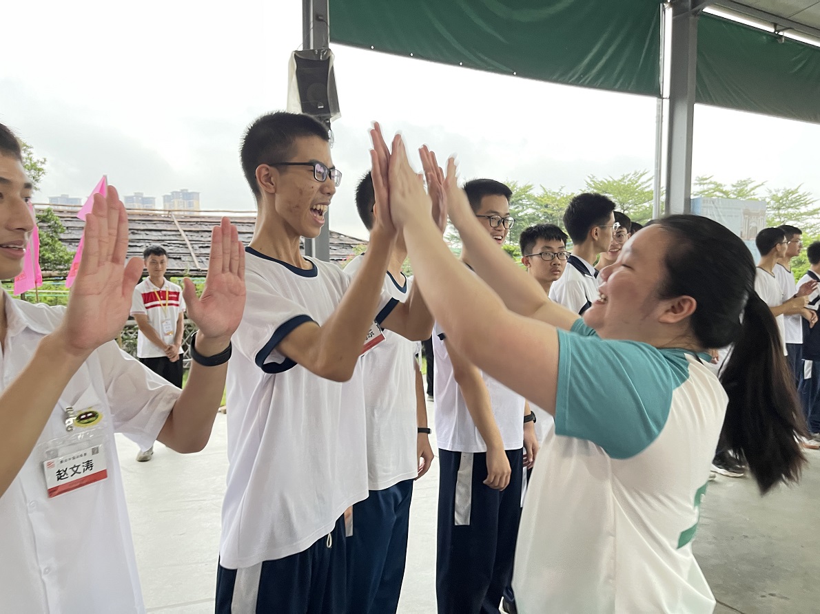 全员通关的那一刻,一直都陪伴在同学们身边的老师再次给同学们送上击掌和拥抱,此时此刻,感动和感恩的泪水夺眶而出,同学们感恩老师一直以来的辛苦付出,感激不离不弃的陪伴,所有同学与老师紧紧拥抱在一起,最后一起喊响班级的加油声,全场再次热血沸腾,激情澎湃!