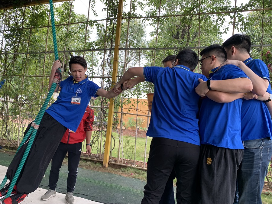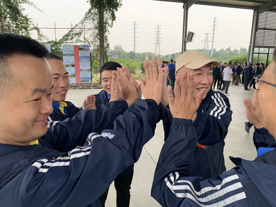“加油!加油!加油!”,每一声的加油都为队员们注入了能量,队长们走到每一位队员面前击掌鼓舞士气,让整个团队的激情瞬间被点燃!