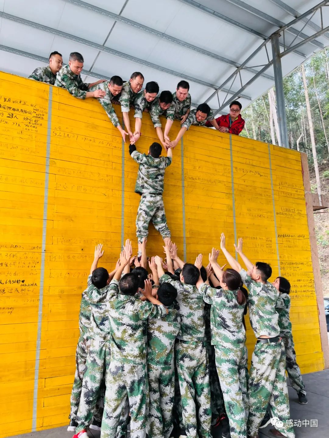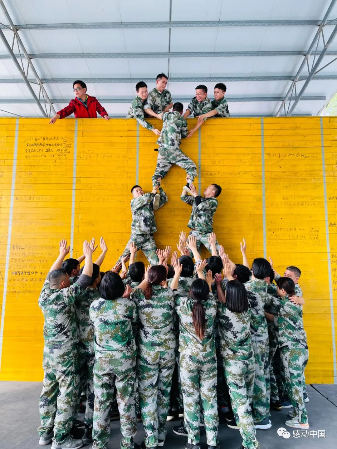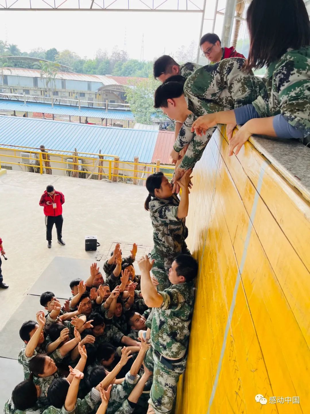 困难和挑战是弱者的绊脚石,却是强者的垫脚石。当面对光滑巍耸的高墙,万昌的精英们团结一致,凝聚团队的智慧和力量,把阶段目标一层一层进行分解,发挥奉献精神,快速搭建成人梯。“快,把手给我!”队员们使出全身的力气,把一个又一个的队员安全地护送到顶峰,跨越了极限,最快最强的记录从此诞生。