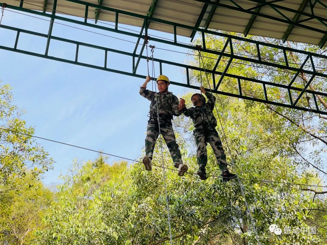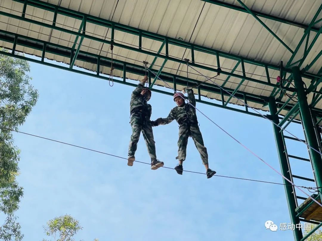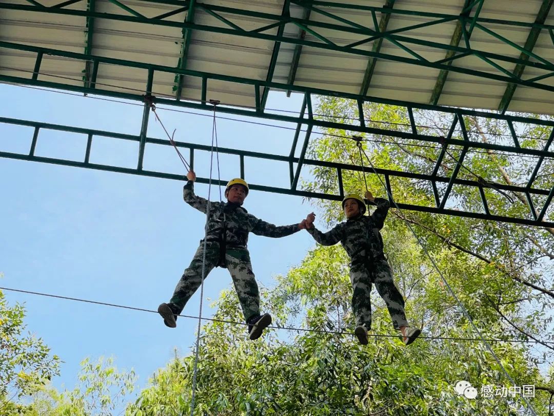 “我们相互握住彼此的手,任何时候都不要放开!”这是队员和身边队友说的话。面对高空,心跳加速,恐惧感瞬间充满整个身体,但是在队友的相互支持和鼓励下,队员们由刚开始的害怕和恐惧转变成勇敢和坚定,稳稳地踏出了第一步,相互信任,相互扶持,共同到达了成功的彼岸,为队员们的精彩表现点赞!