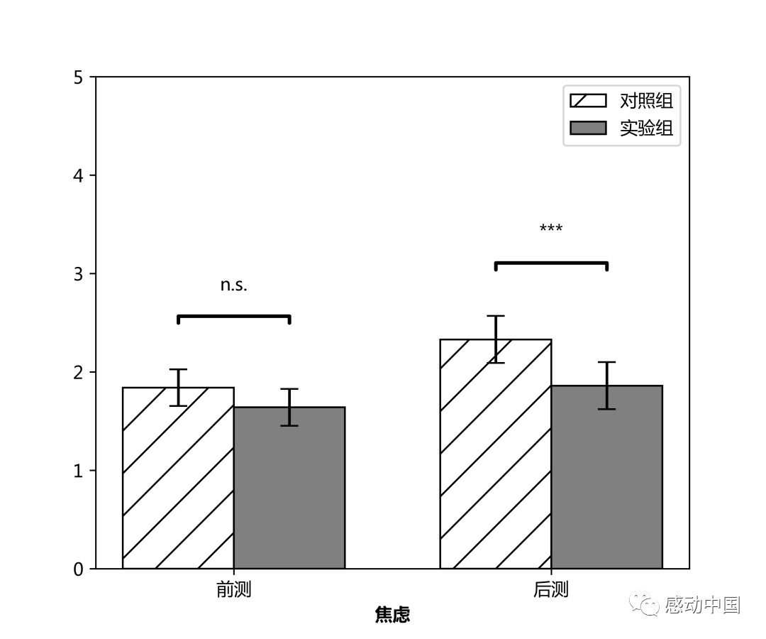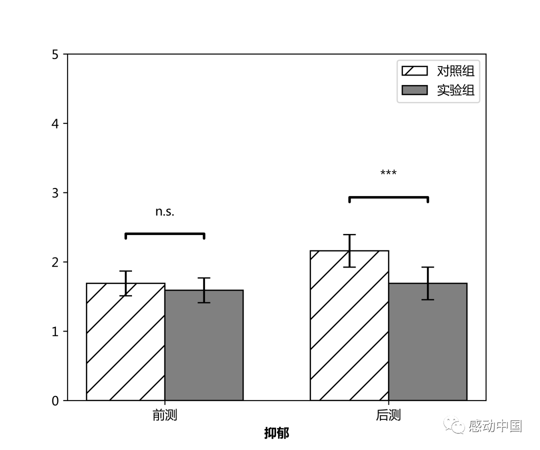 数据结果显示,在学期开始时,实验班和对照班在抑郁和焦虑水平上没有显著差异。但在一个学期的课程后,对照班的学生抑郁水平明显升高,而实验班的学生抑郁水平保持不变,统计学上差异显著。同样的,对照班学生的焦虑水平在一个学期后显著上升,而实验班的焦虑水平没有显著变化。