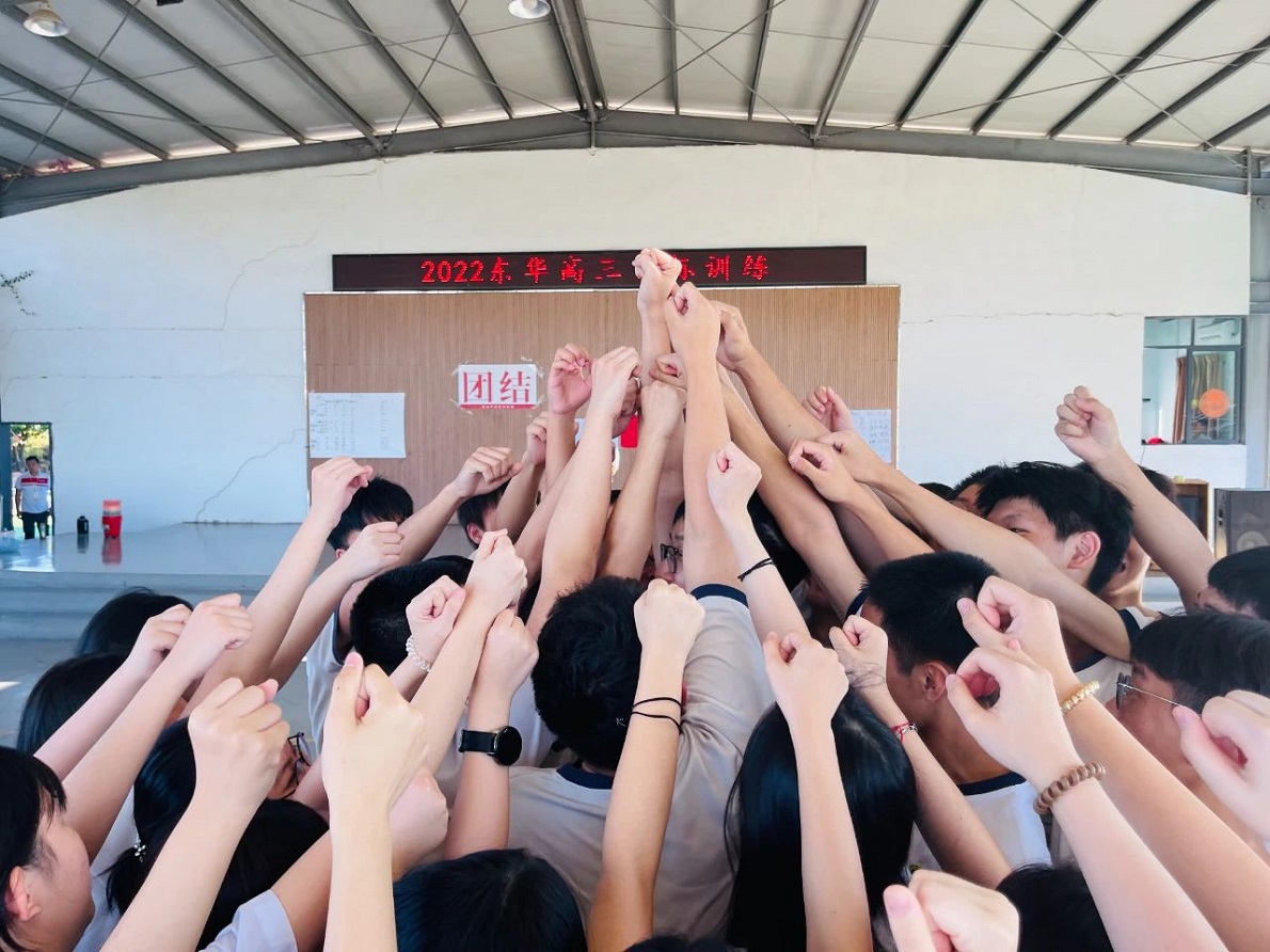 所有成功的人都是有强烈的目标感,东华高级中学每年高考都能取得优异的成绩绝对不是偶然,其中能助力学生的就是高三目标训练。量身定制的目标训练让每一位学子通过层层提升难度的项目挑战,在教练团的引导启发下,从目标模糊到清晰目标,坚定信念并全力以赴冲击自己的目标。面对终极挑战魔王关,同学们用坚定而又自信的目光直视面前魔王的眼睛,发自内心呐喊出“报告魔王,我的目标是……”。当挑战失败的时候,同学们相互安慰和鼓励,流着眼泪,手握拳头,喊出“一定要打败魔王!”的壮志豪言!用尽全身力量呐喊出自己心中理想的目标。一次又一次竭尽全力的呐喊,屡战屡败,屡败屡战,喉咙喊破,热泪满眶,为了目标坚持到底,决不放弃!全员通关的那一刻,所有同学与老师紧紧拥抱在一起,感动和感恩的泪水再次夺眶而出,同学们感恩老师一直以来的辛苦付出和不离不弃的陪伴,最后一起喊响班级的口号,全场再次热血沸腾,激情澎湃!奋斗不息,壮志凌云;不负韶华,金榜题名!23高考,东华必胜!