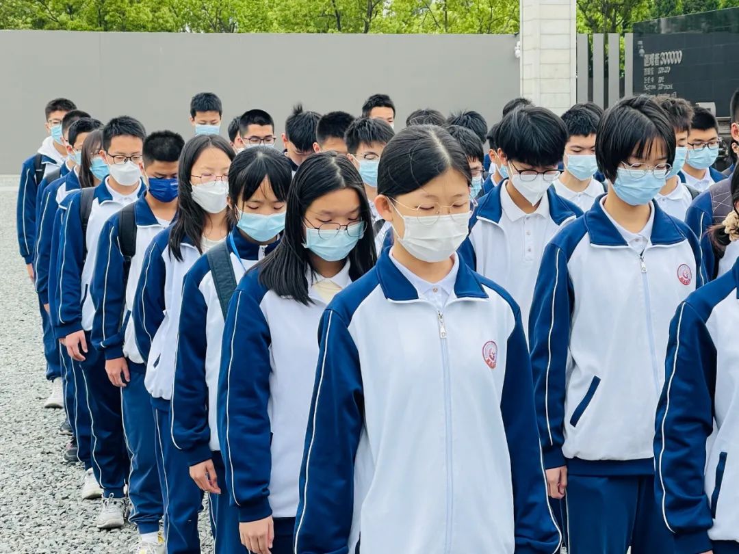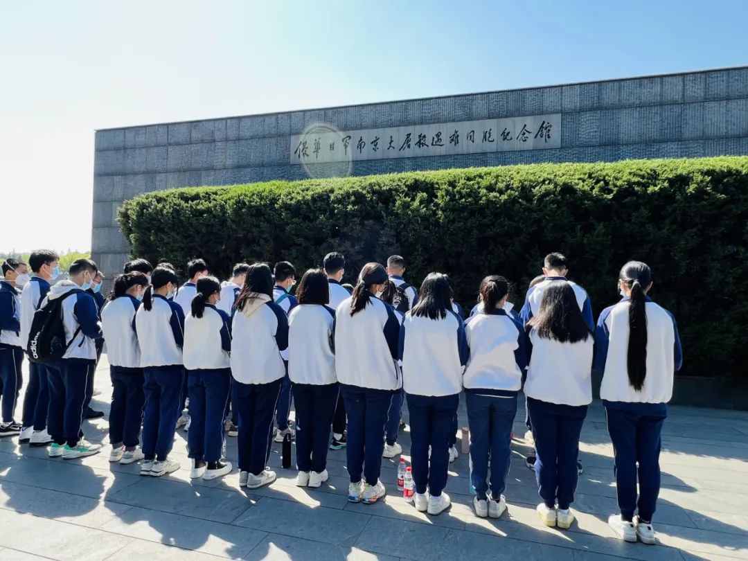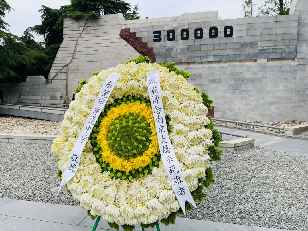 莞中的同学们一路神情凝重,为南京大屠杀死难者献上花圈,集体默哀,凭吊遇难同胞。