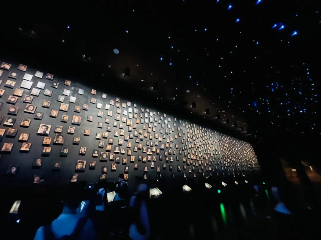 走进黑色盒子般遇难者骸骨陈列室,它象征着历史真相的黑匣子。馆内两侧的书架上陈列着遇难者档案,正对面是一块大屏幕,上面滚动着300000多个名字,馆内的雕像再现了当年侵华日军占领南京后杀戮老百姓的悲惨情景:有拼命躲避日军飞机轰炸的、有四处逃亡的、有受到日军侵害准备跳江自杀的、还有婴儿趴在妈妈的尸体上想要再吃一口奶的……这一个个悲惨的雕像都在诉说日本侵略者的极其野蛮与残暴,但是中国人民没有屈服,他们目光坚定,百折不挠,万折不屈,他们怀中犹有万千灵魂在啼哭。