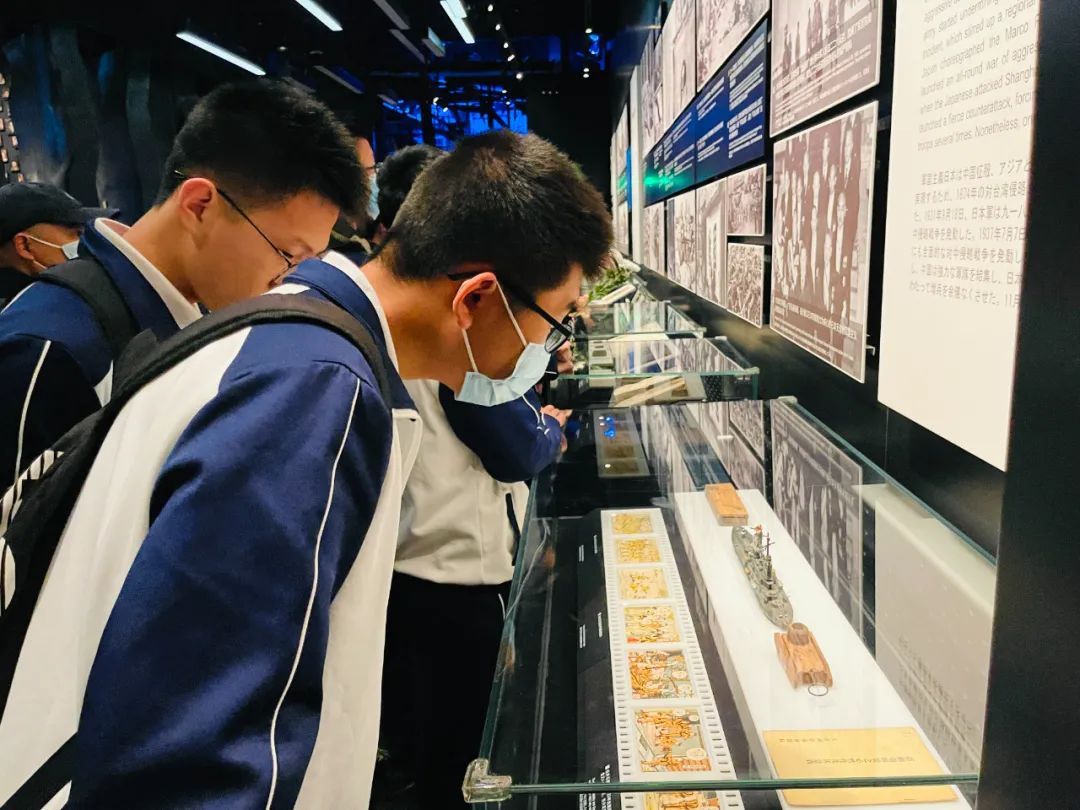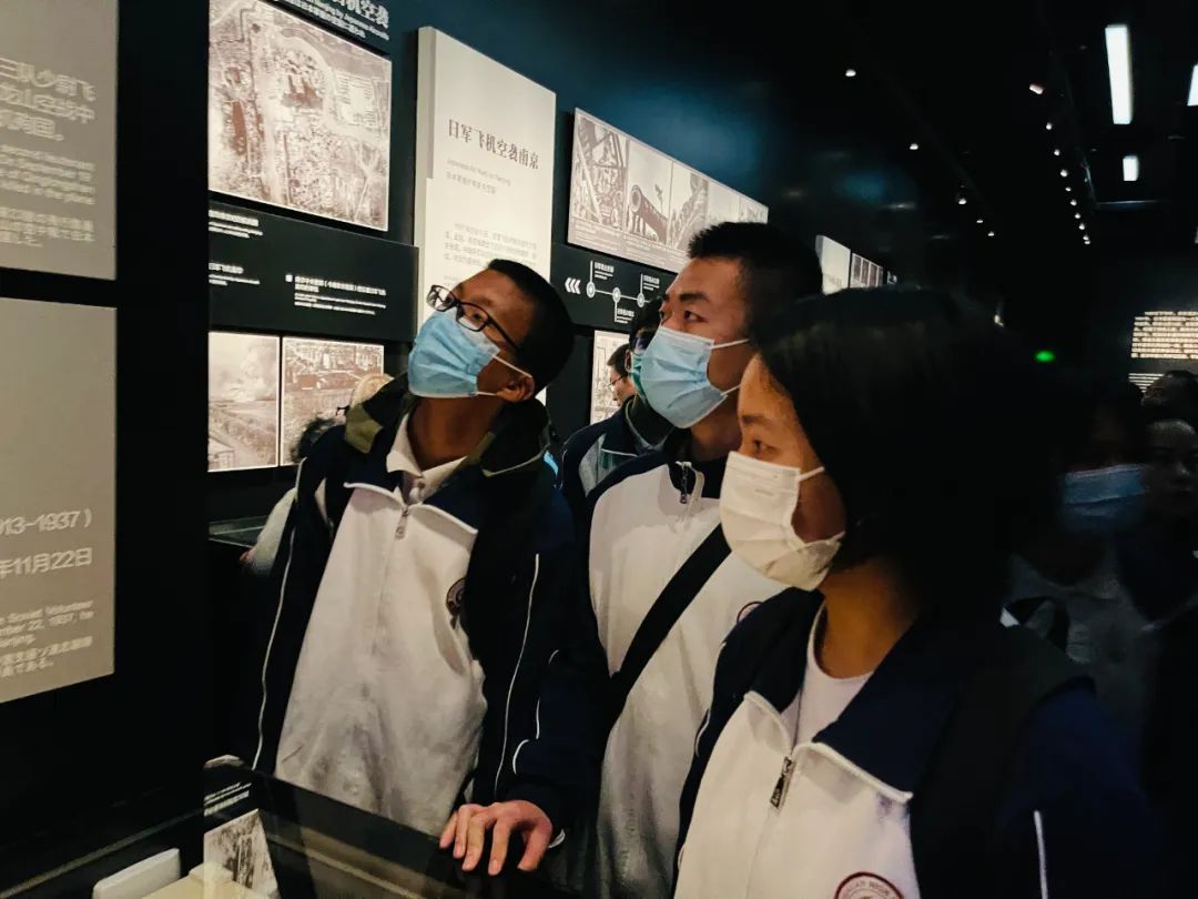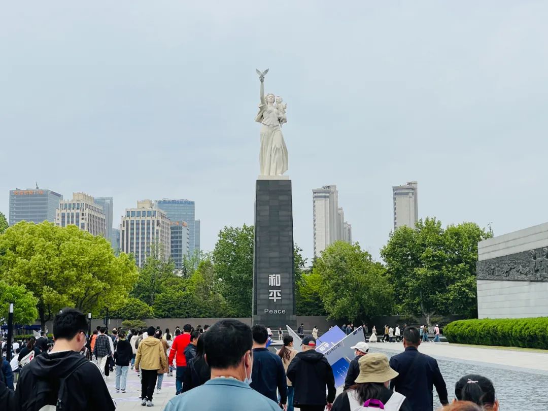 文字无声,却震耳欲聋。从战争的不毛之地到残酷罪行的“万人坑”,再到冷静反思的黑暗“冥思堂”,最后通往了光明的“和平广场”。大幅流动的水面,环绕成荫的绿树,怀抱孩子的母亲塑像告诉同学们:我们记住的不是仇恨,而是历史,是落后就要挨打的痛,是无辜惨死民众的血,是和平来之不易的泪,更要向浴血奋战,守护了和平的无数仁人志士致以崇高的敬意。