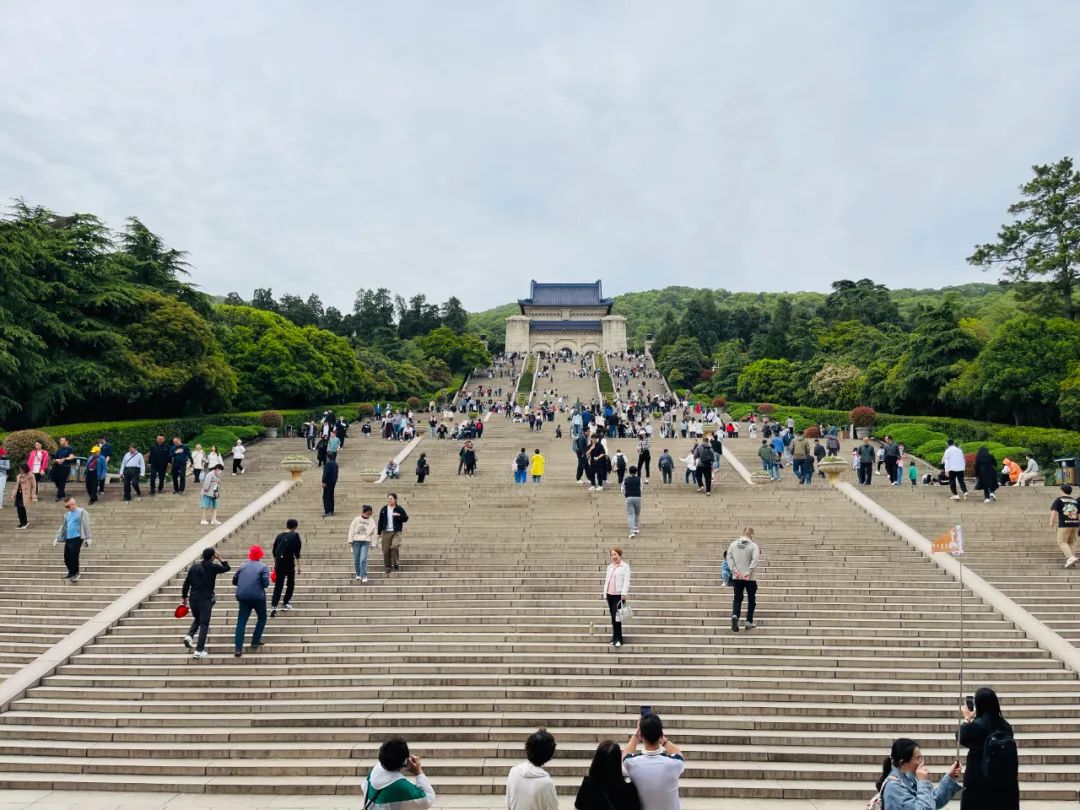 拜谒中山陵让同学们了解其建设的意义、难度,拾级而上追忆孙中山先生的生平,