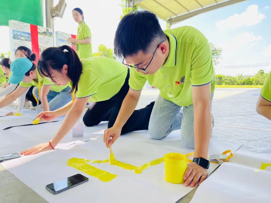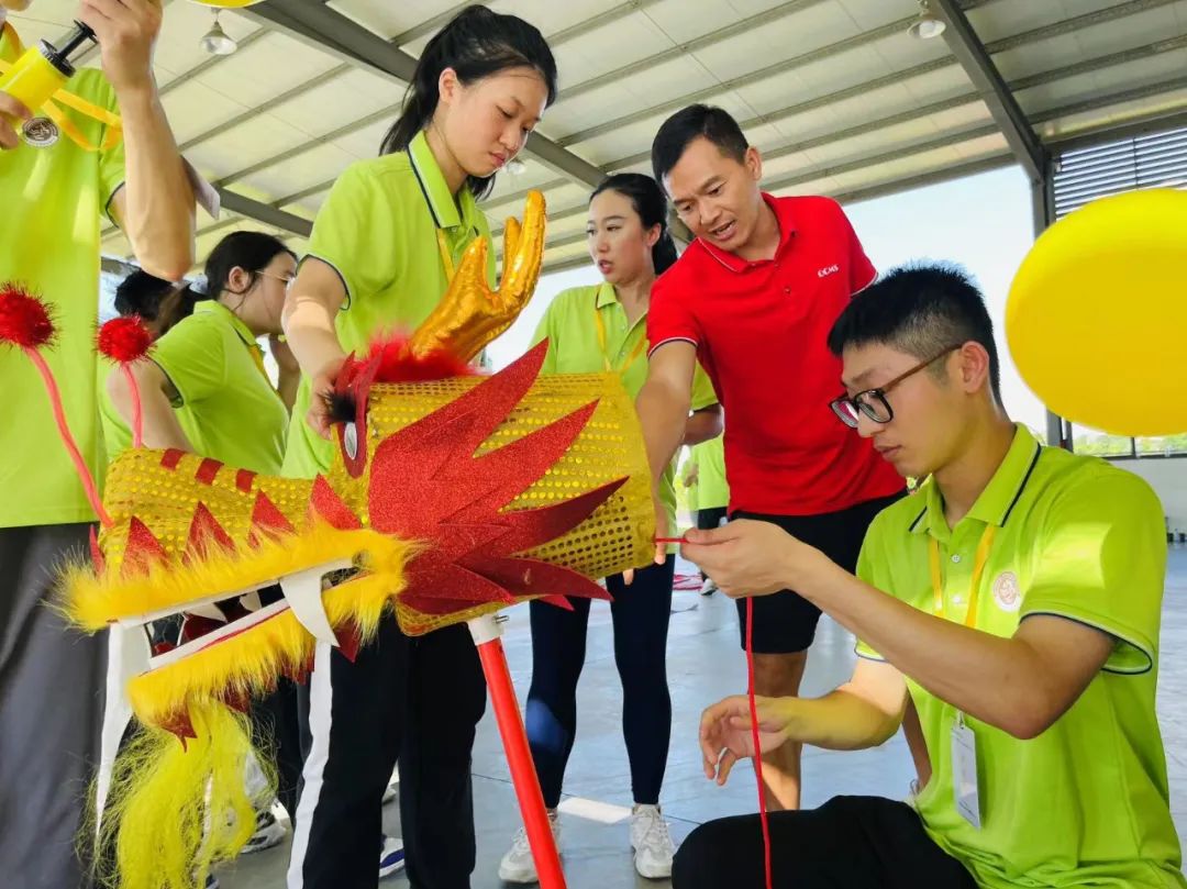 感动中国教练团还为我们东莞的新教师量身定制了特别项目——舞动精彩。舞动精彩需要所有队员以教育主题为背景共同制作巨龙和完成创意彩绘。在教练团的引导下,队员们目标一致,分工明确,高效策划,势必要呈现最有创意,最丰富多彩的效果。有的队员团团围坐在一起,高效有序地制作和拼接龙头、龙尾和龙身,有的进行头脑风暴,构思运用手中的彩色颜料创造出生动有趣的绘画。
