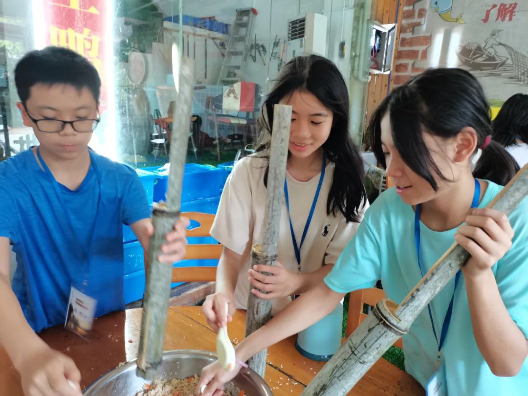 下午,同学们来到农庄学习制作竹筒饭,自己动手,丰衣足食,别有一番风味~