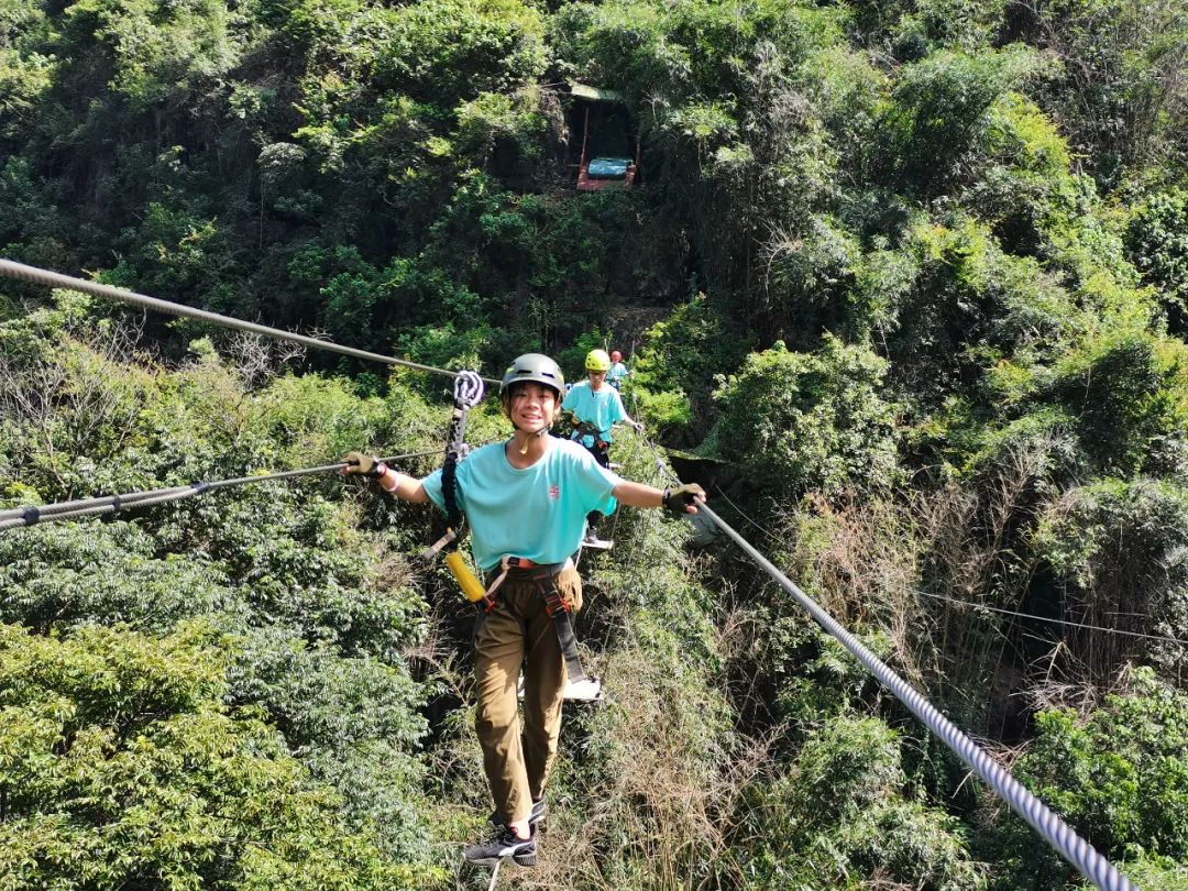往高峰处勇敢攀登,感受高空钢索飞行的刺激,享受山林与微风带来的自由。