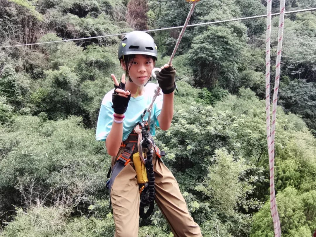 在安全绳及教练团的保护下,孩子们做足准备,在惊险刺激的径道上一路向前,