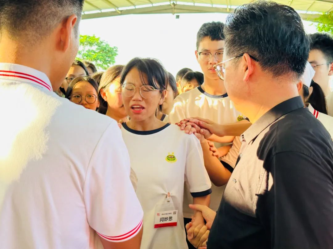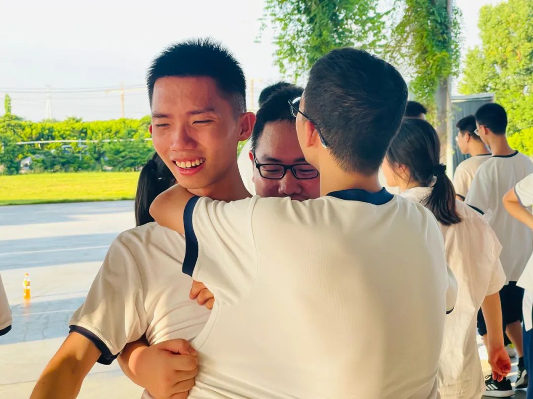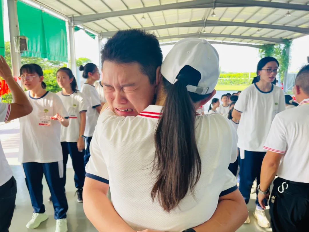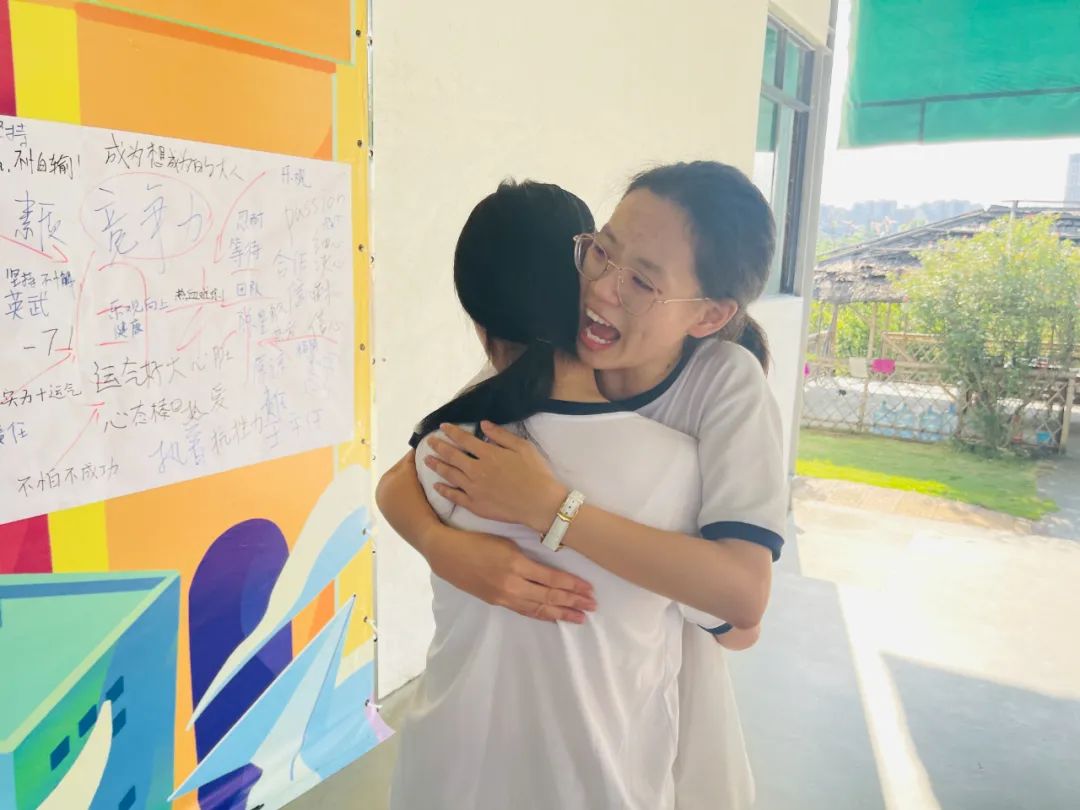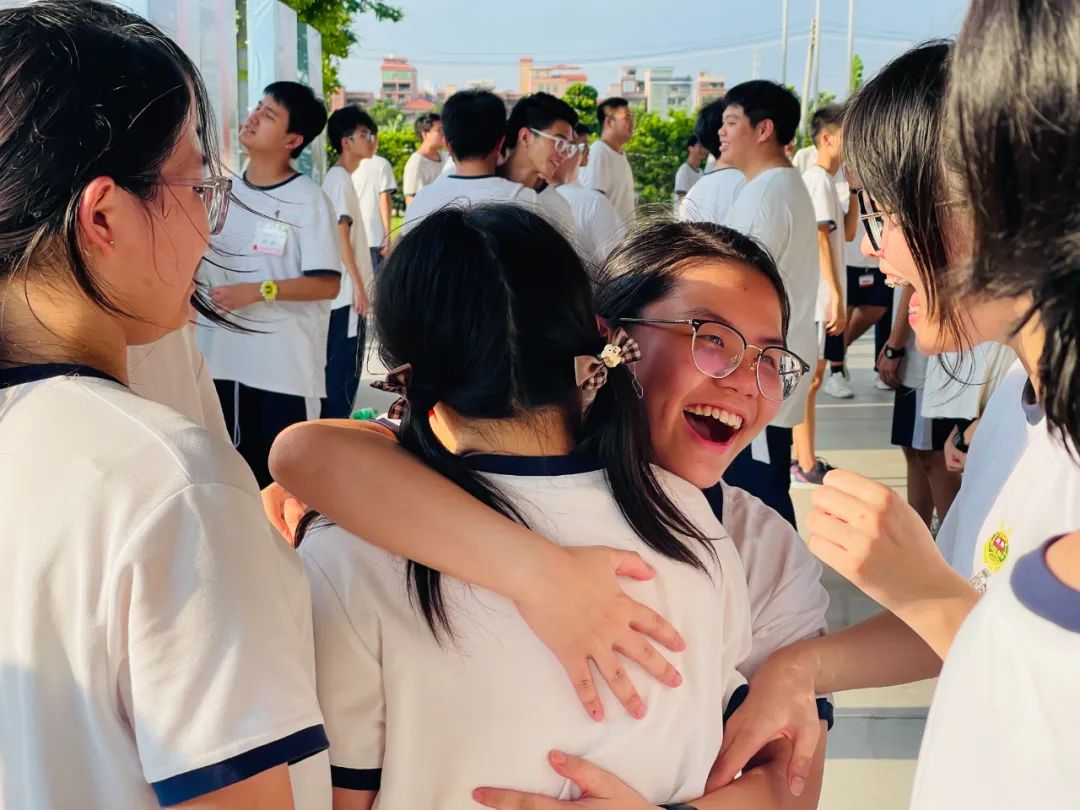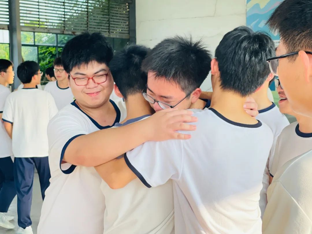 泪水与笑容同时绽放,拥抱与鼓掌共同进行,阳光洒在每个人的脸上,大家把手叠在一起,