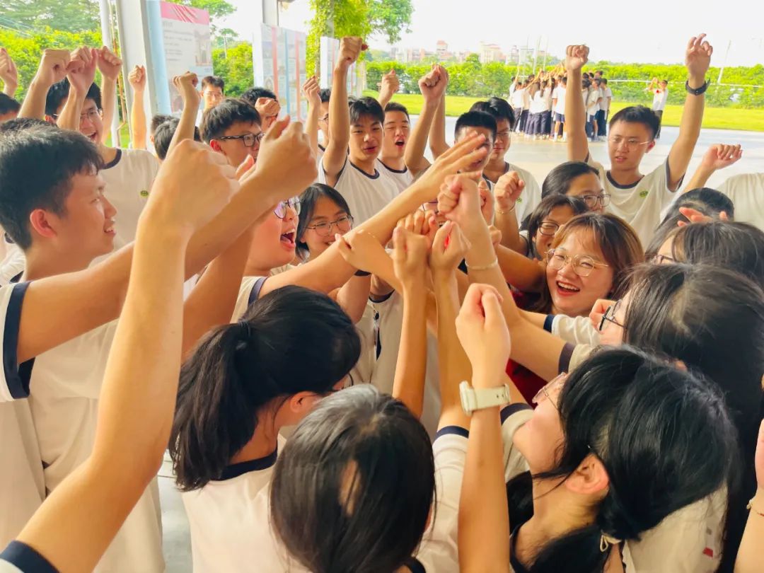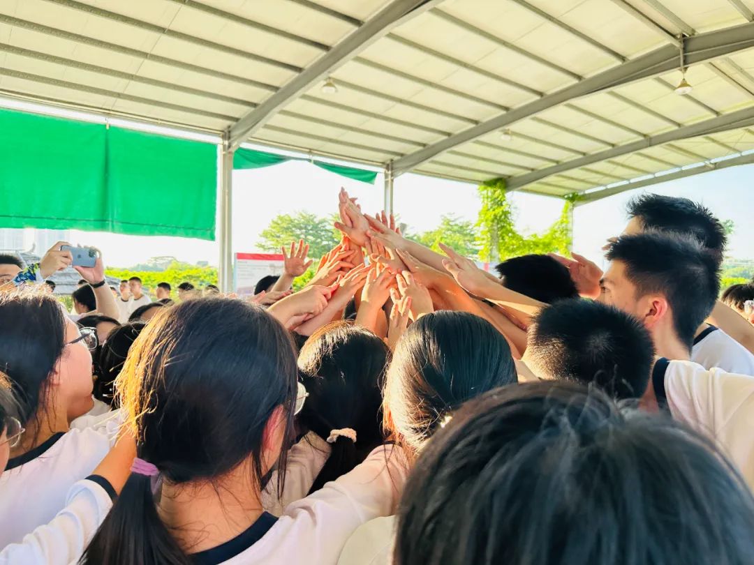 共同喊响加油,全场热情澎湃,激昂奋进!