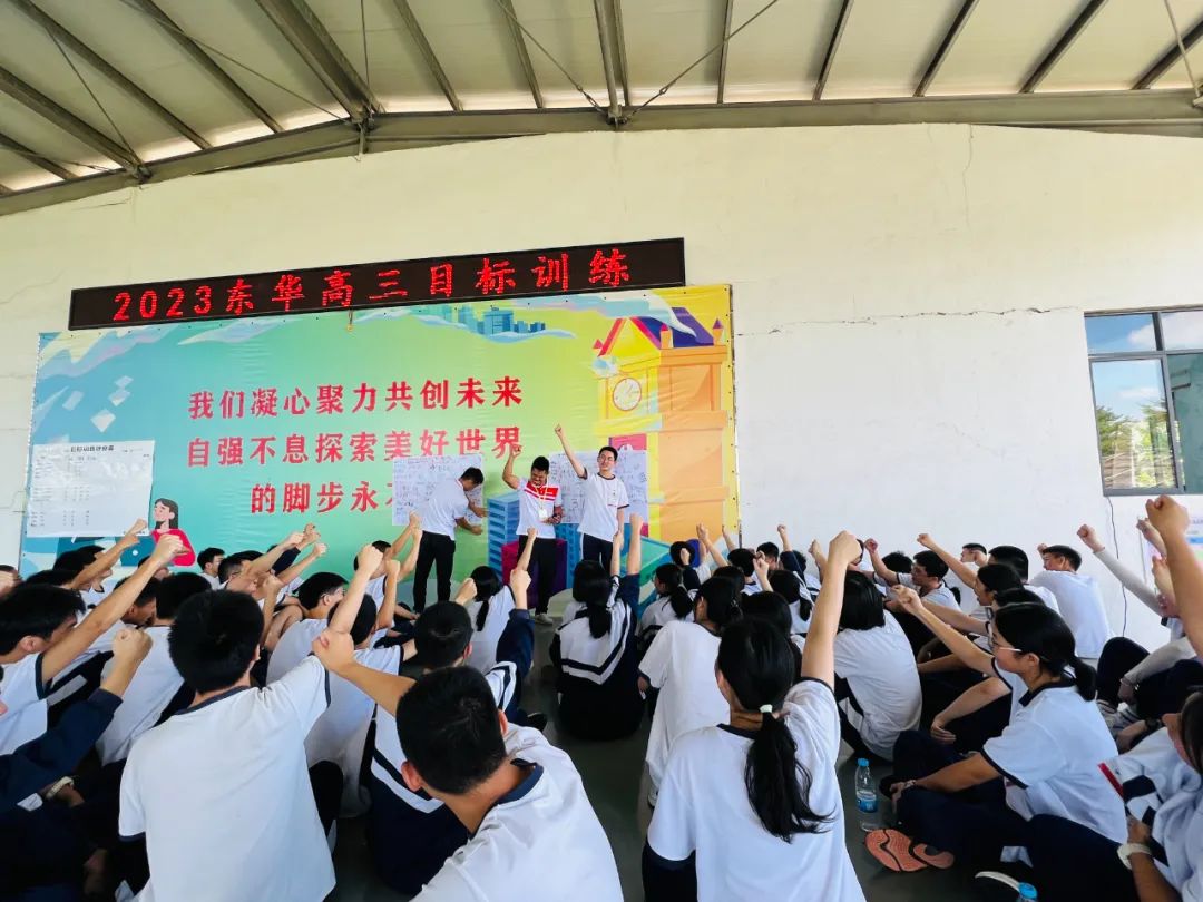 目标训练是感动中国的王牌课程。量身定制的目标训练让每一位学子通过层层提升难度的项目挑战,在教练团的引导启发下,大家逐渐进入状态,思考着自己与班级之间的联系,畅谈对班级的印象与愿景,在活动项目中,每个人全情参与、认真投入,为自己小组及班级争取更多的荣誉。面临魔王关、成功之路等挑战,大部分同学都能主动勇敢地挑战自我、不断拼搏并最终战胜自己心中的魔王,更加坚定自己的目标所向,有一小部分同学会感到害怕、内心打起退堂鼓,但在教练、老师以及身边同学的帮助和鼓励下,最终全员成功通关,全员通关的那一刻,所有同学与老师紧紧拥抱在一起,感动和感恩的泪水夺眶而出。活动最后全班共同振臂高呼,共同为了梦想冲刺,一起创造了属于2024届东华高三学子的新一代辉煌!
