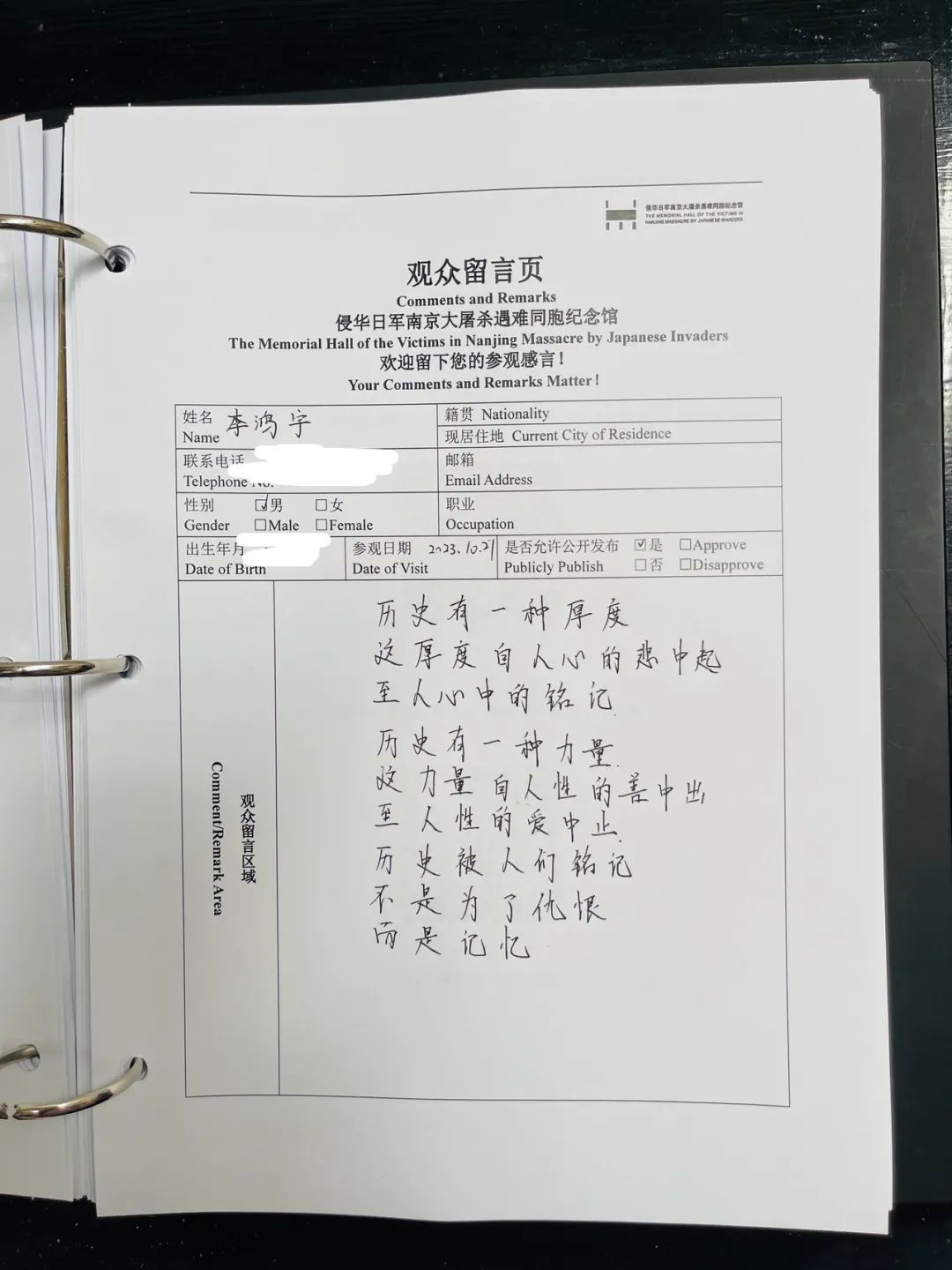 四天的南京研学旅行,同学们领略到了南京的优美风景与深厚的历史底蕴,同时难忘南京大屠杀遇难同胞纪念馆昏暗灯光下影射的历史耻辱和对死难者和沉痛悼念,记得孙中山先生的伟大品格和不朽精神,记得默默为国家铸造利剑的东南大学,也记得傍晚灯火通明的夫子庙,秦淮河上飘荡着的木舟,灿烂的满墙蔷薇……。岁月带走了历代的生命,留下一座城市以此纪念。