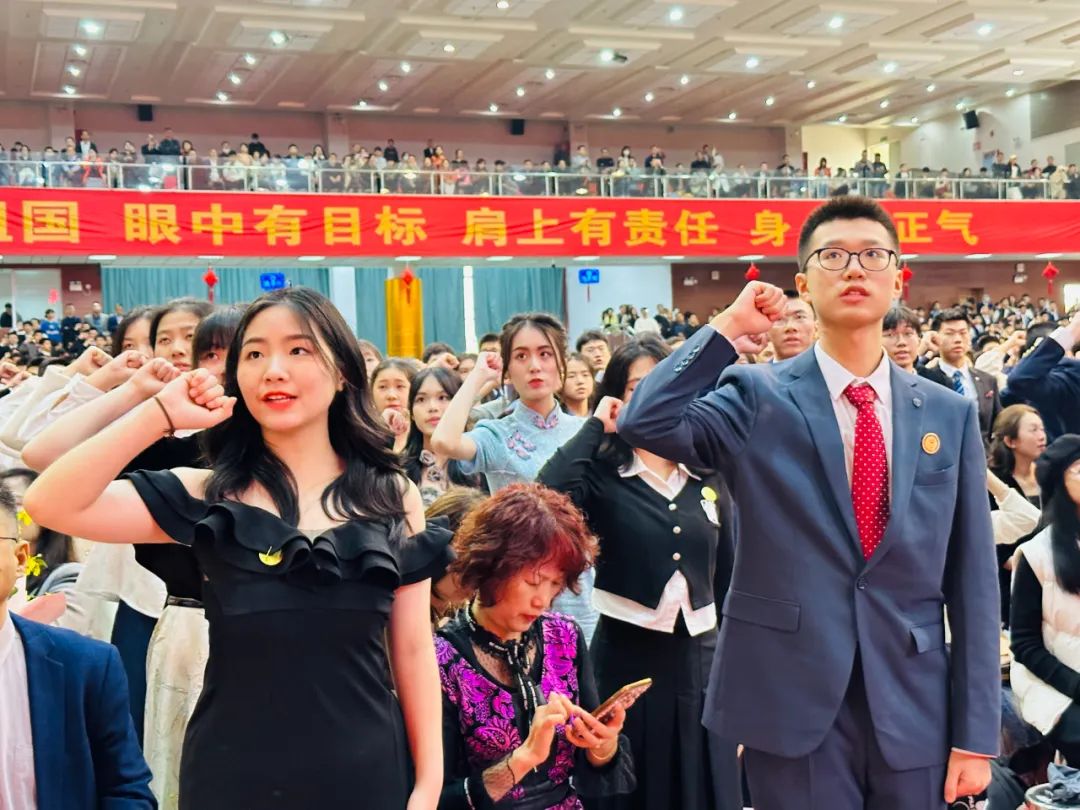 除了父母为孩子准备的十八岁成人之礼,学校也为每位同学送上一份庄严而又神圣的礼物——《中华人民共和国宪法》,全体同学在校方领导的带领下,面对国旗庄严宣誓,爱祖国,爱人民,为远大理想而奋斗,一字一句掷地有声,整齐响亮的誓言在会场回荡,同学们眼神坚定,展露出成年后的责任与斗志,迎接自己新的人生旅途。