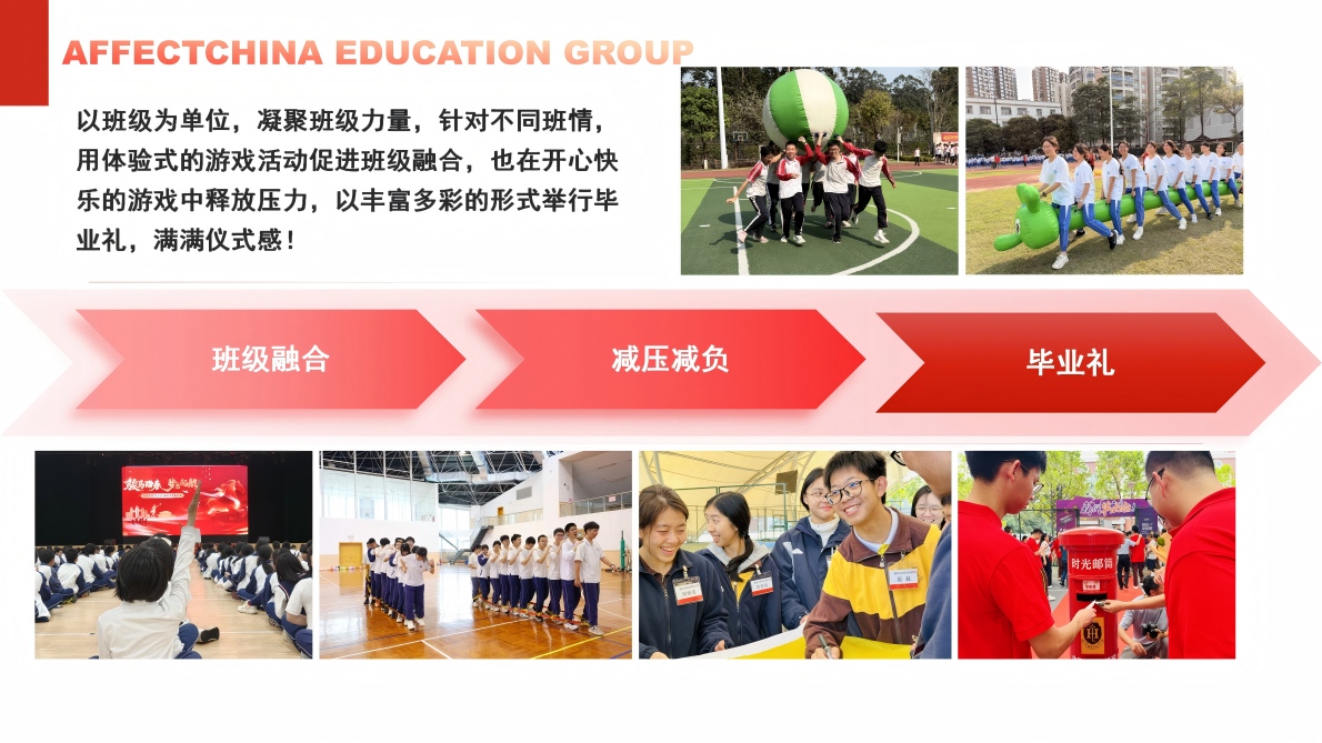 百日誓师、感恩激励活动、班级融合活动、减压减负活动